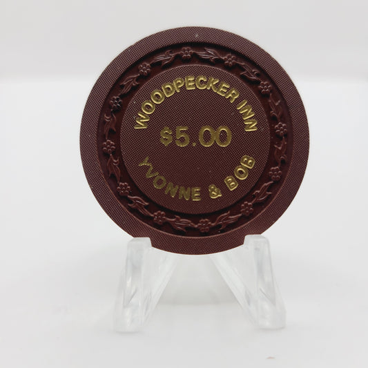 Woodpecker Inn "Yvonne & Bob" Hotel Motel Heppner Oregon $5 Casino Chip CG199546