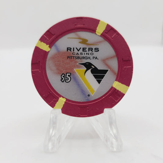 Rivers Casino Pittsburgh Pennsylvania 2017 "Pittsburgh Penguins" $5 Casino Chip