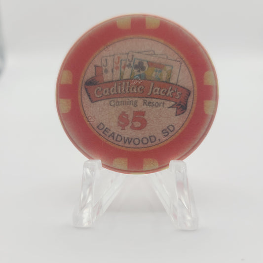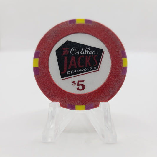 Cadillac Jack's Gaming Resort Casino Deadwood South Dakota 2015 $5 Casino Chip *Circulated