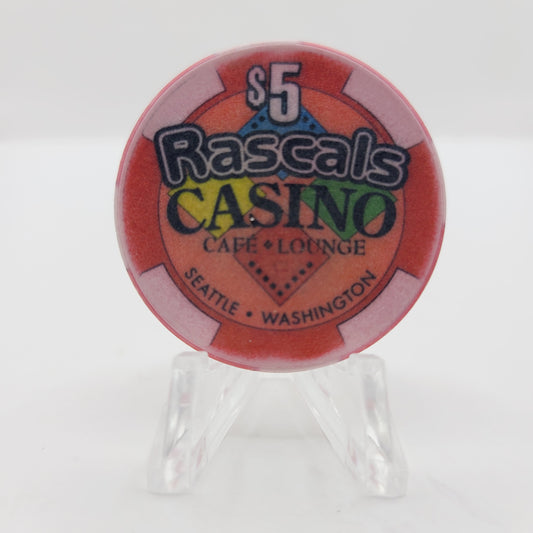 Rascals Casino Seattle Washington "Card Room" $5 Casino Chip