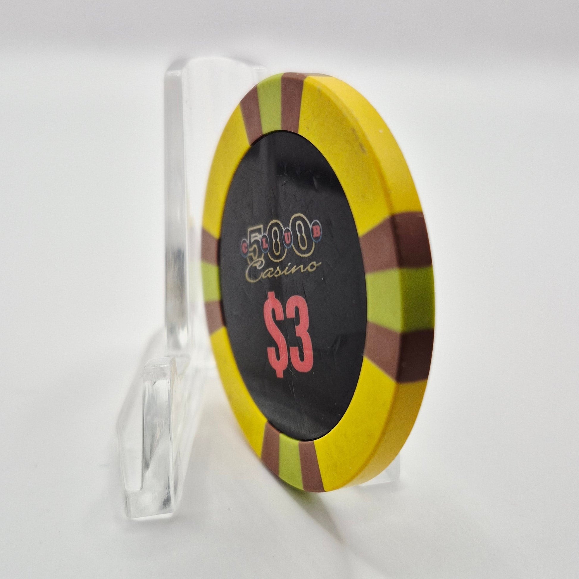 Experience a piece of history with the 500 Club Casino Clovis California $3 Casino Chip. This casino, opened in 1953, offers a unique and authentic gaming experience. Add this collectible chip to your collection and own a part of the past.