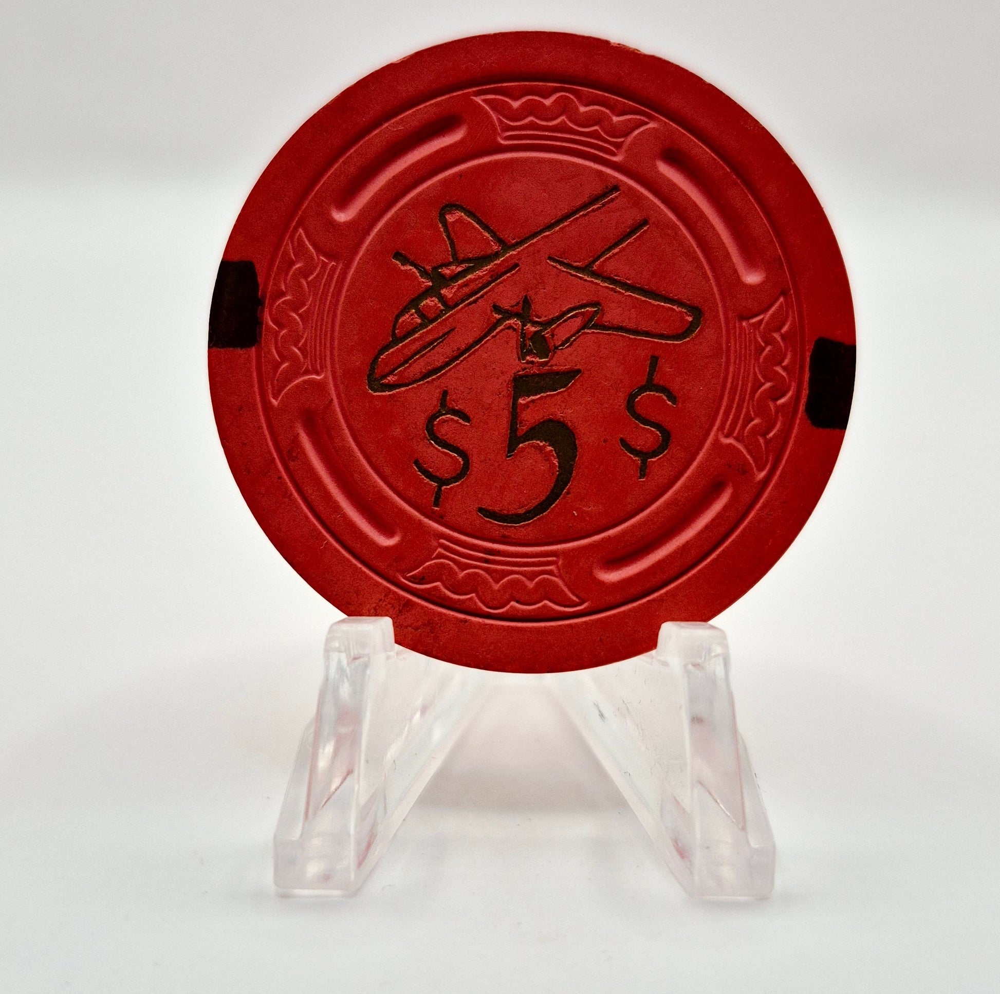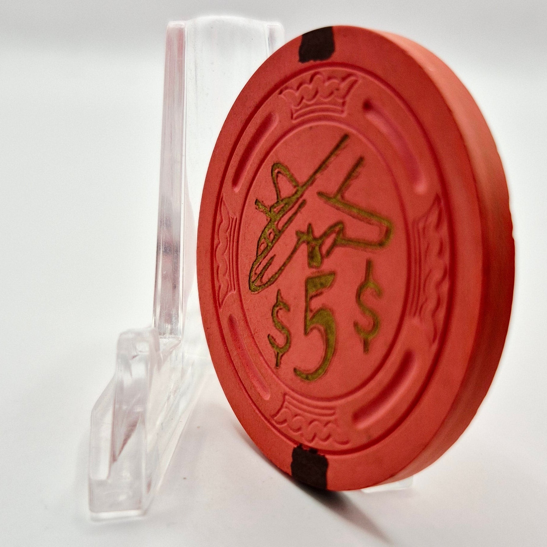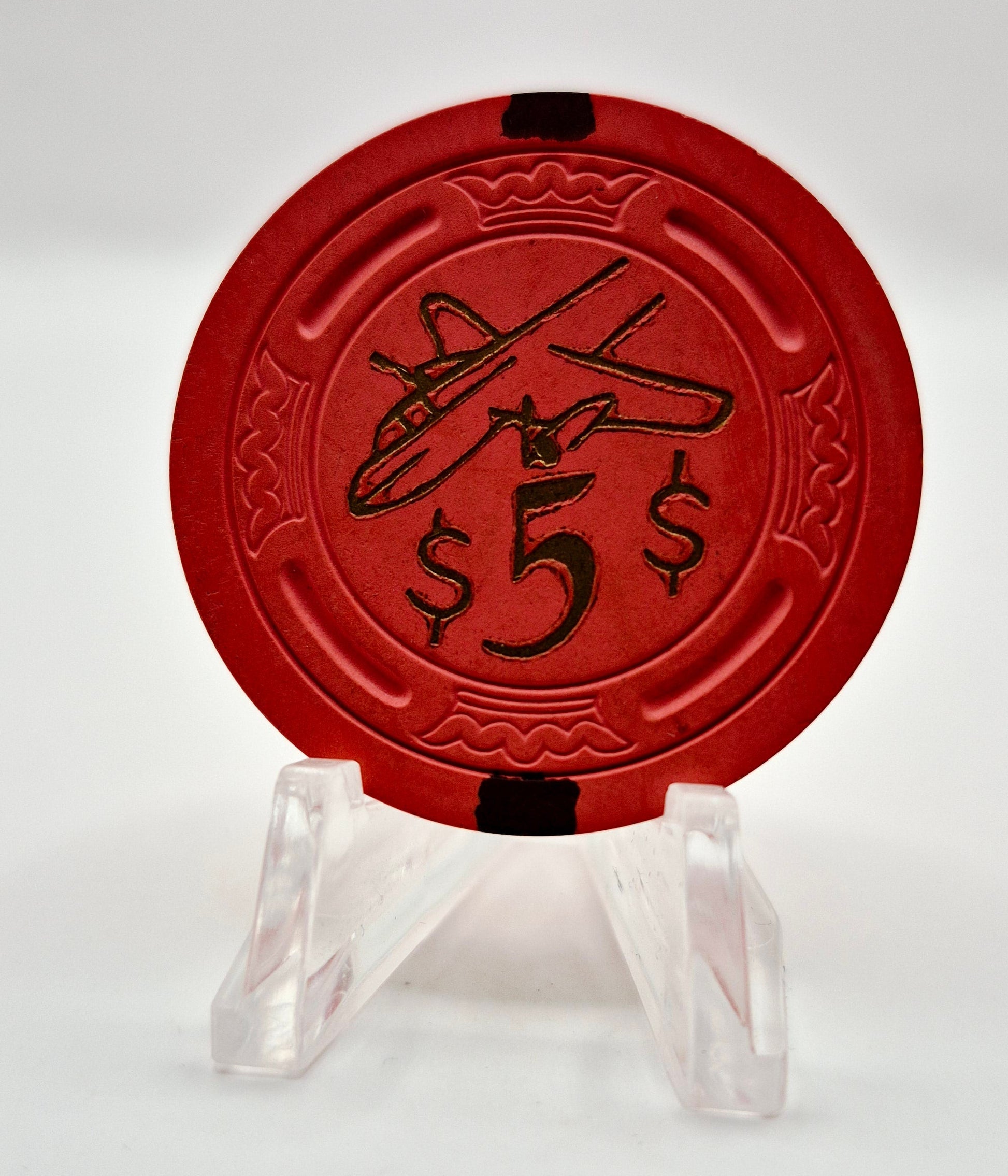 The Airport Club Card Room in Seal Beach, California operated from 1950 to 1953, reflecting a significant period in local gaming history. This rare $5 casino chip, identified as *SHARP CG075572*, serves as a collectible artifact from a venue that was part of California's gaming evolution during the mid-20th century.