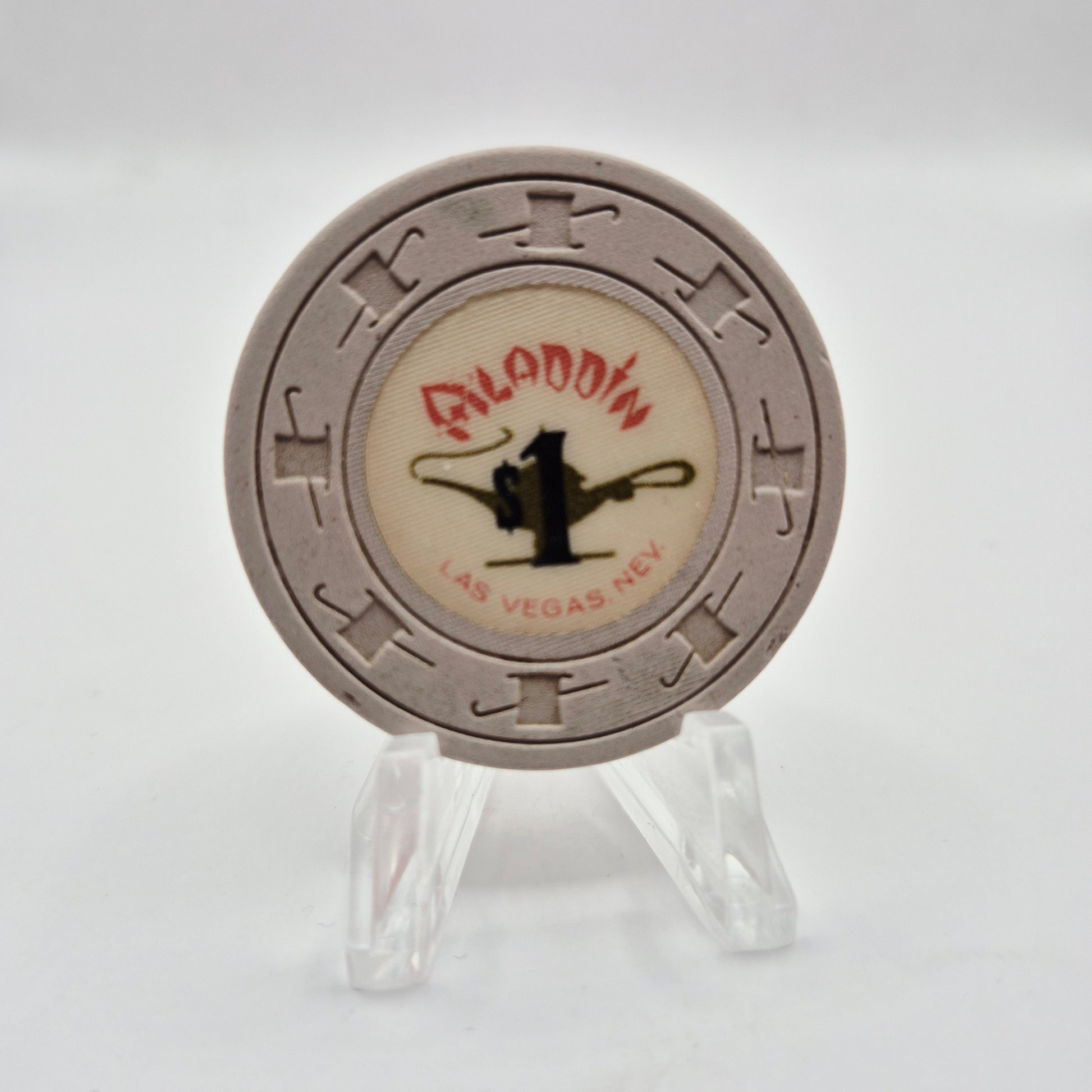 The Aladdin Hotel Casino in Las Vegas, Nevada offers a piece of history with its 1970's $1 chip. Open from 1968 until 1997, this casino has a reputable and established legacy in the industry. Own a piece of the past and add this chip to your collection.