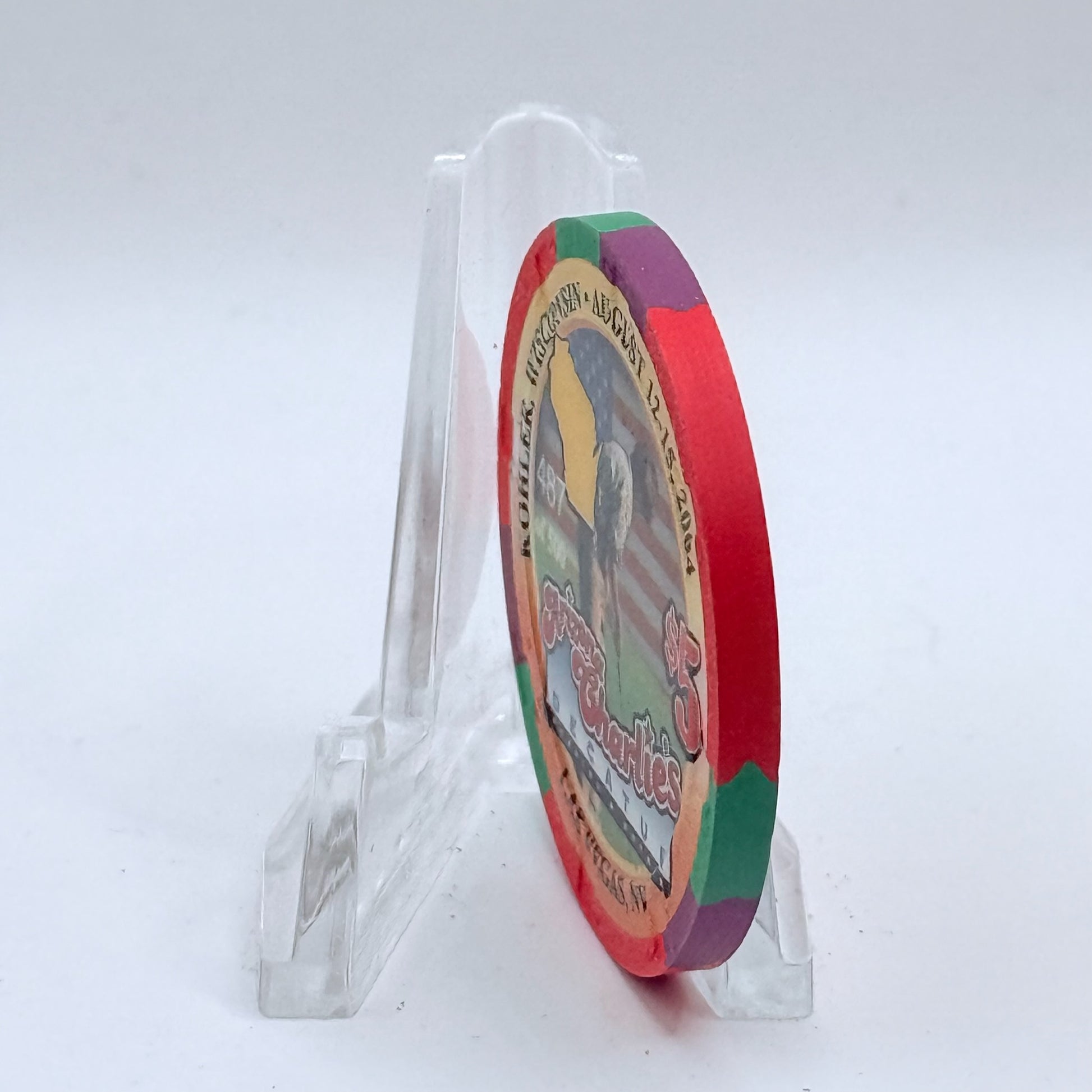 Picture the neon lights of Las Vegas back in 1988 — this 2004 $5 chip from Arizona Charlie's Decatur (West) was right in the middle of it all.