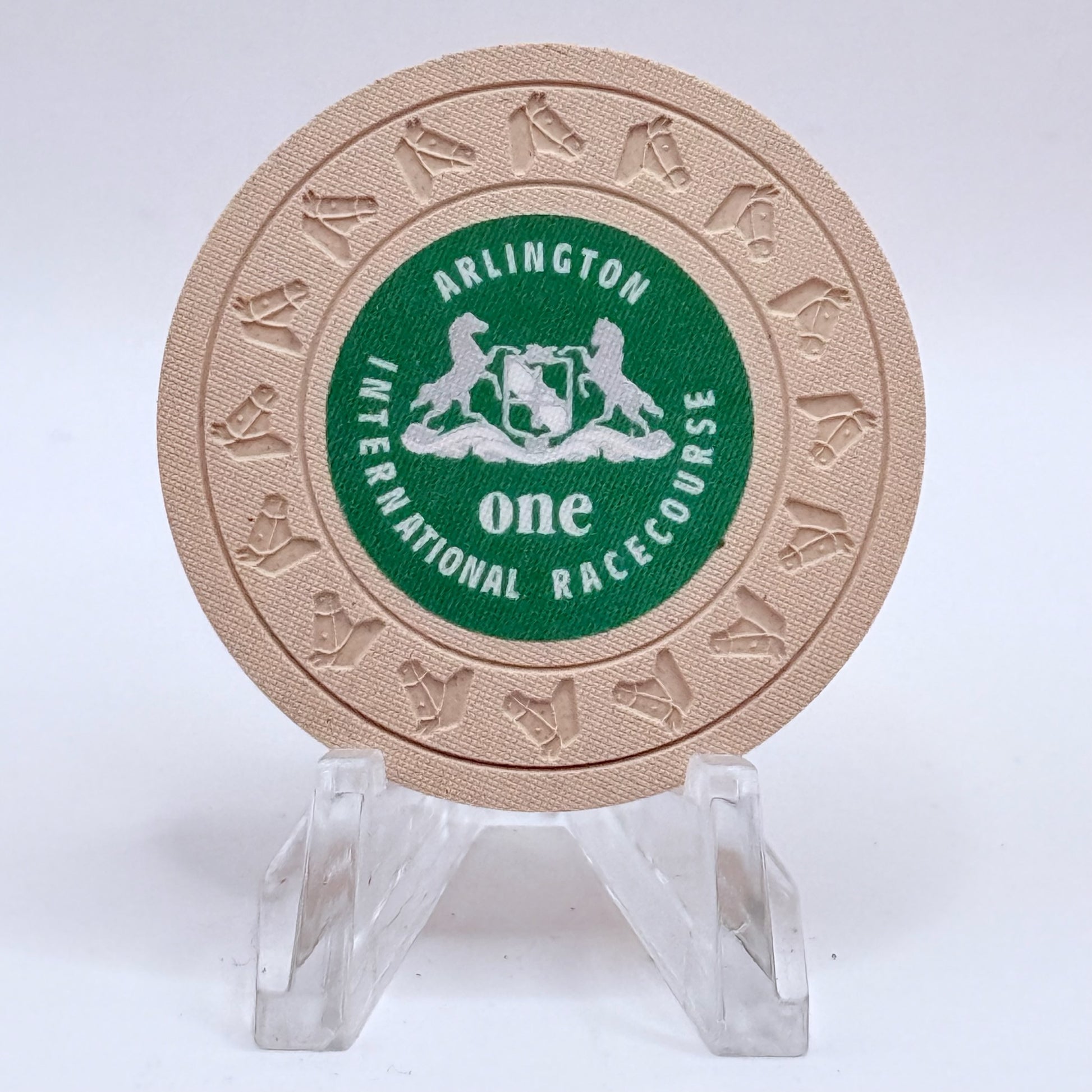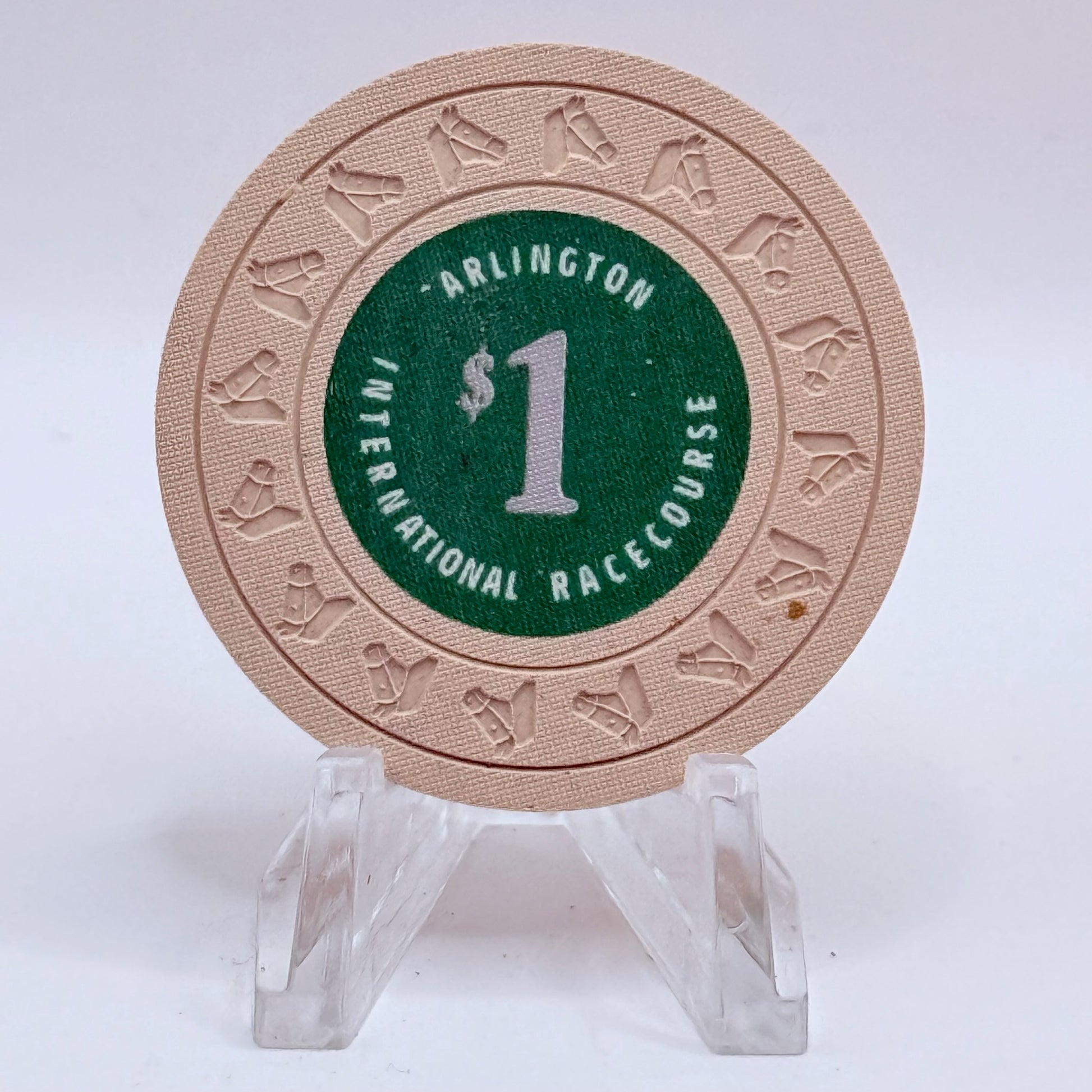 Here from Arlington Heights, Illinois, comes this $1 chip from Arlington International Racecourse, a must-have for any serious collector.