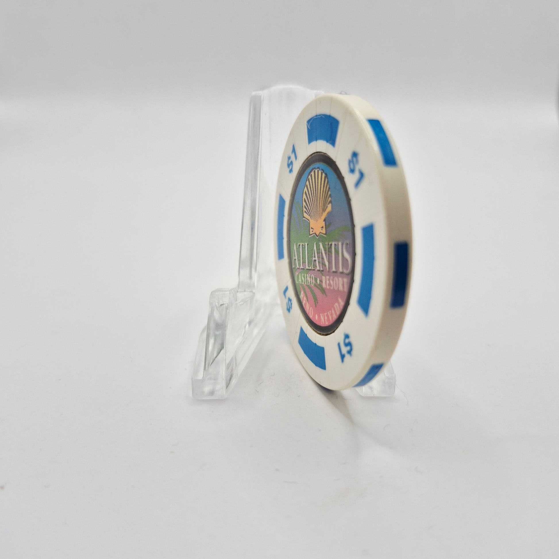 The Atlantis Casino Resort, opened in 1996 in Reno, Nevada, presents the Atlantis Casino Resort Reno Nevada 1998 $1 Casino Chip N9278. Join the gaming action at one of Nevada's most renowned casinos and enjoy this collectible chip from its opening year.