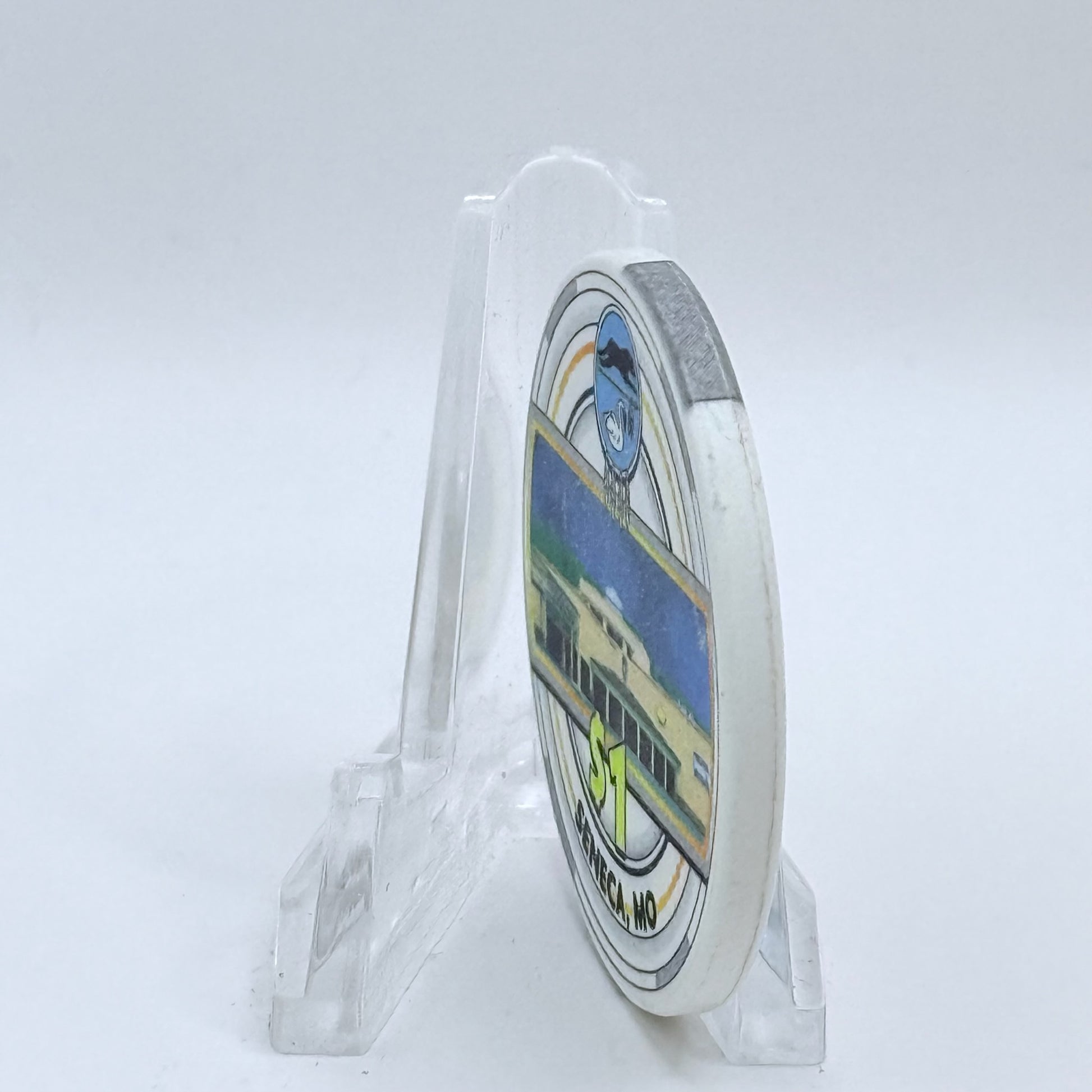 This $1 chip from Bordertown Casino captures the spirit of West Seneca, Oklahoma during its golden age between 1987 and 2015.