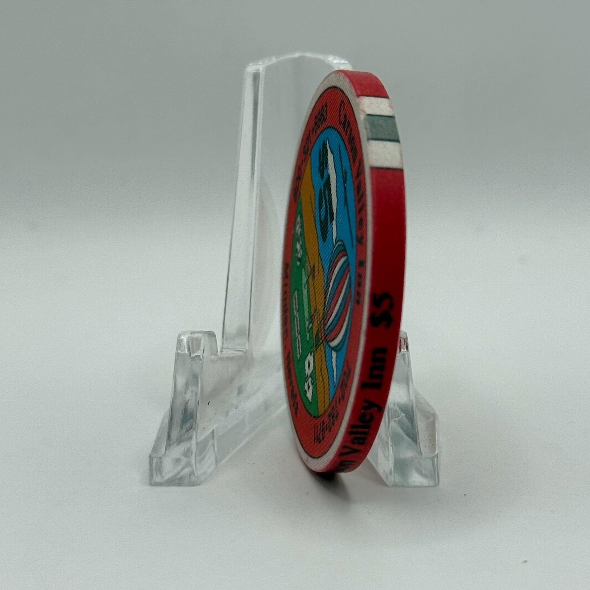 Experience the thrill of playing at the Carson Valley Inn Minden Nevada with our 1991 Series 10 Limited Edition $5 casino chip N7640! This collector's item is a reminder of the casino's opening in 1984 and serves as a piece of Nevada's rich gambling history. Get yours now before they're all gone!