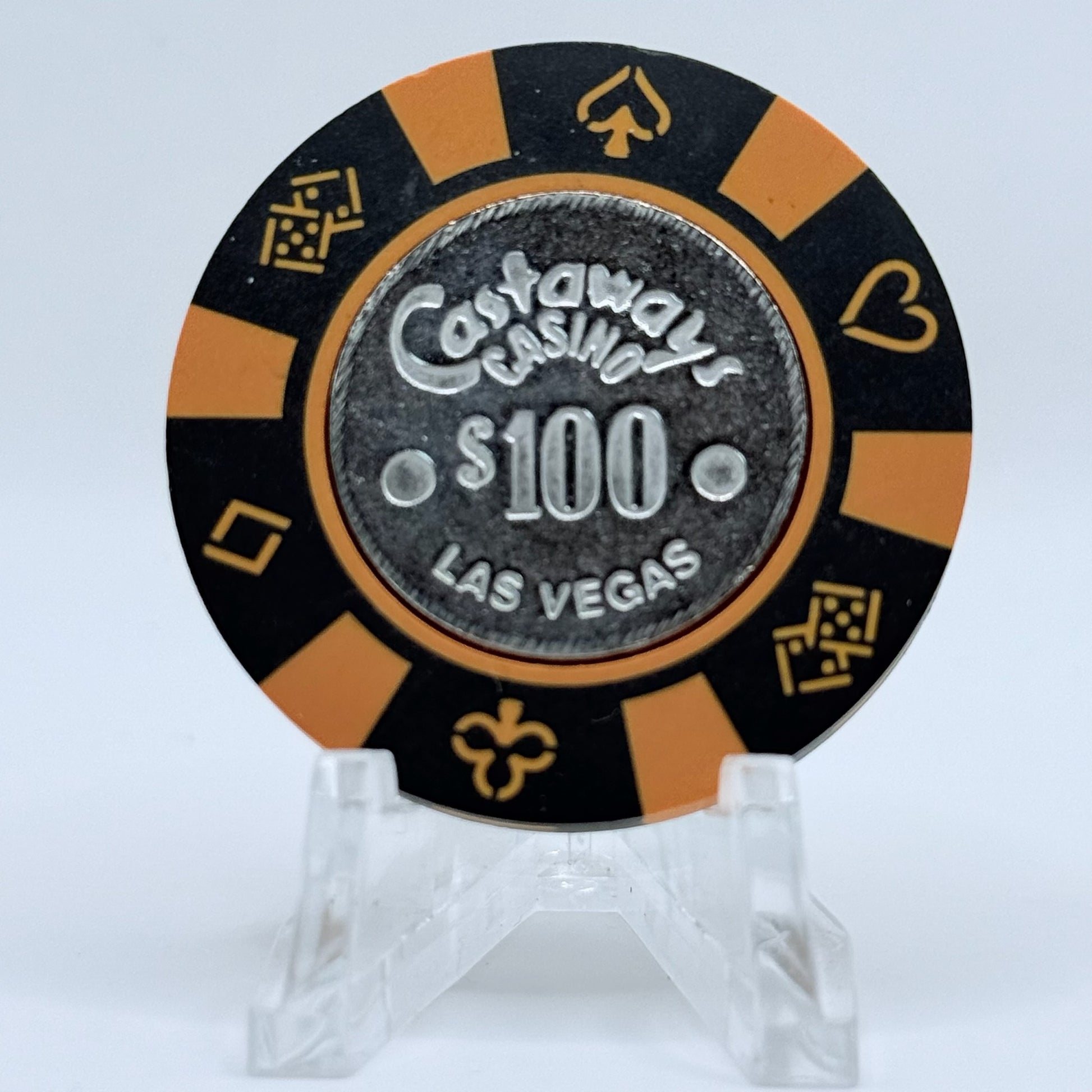 Add a touch of classic Las Vegas flair to your collection with this $100 imitation chip from the historic Castaways, open from 1963 to 1987.