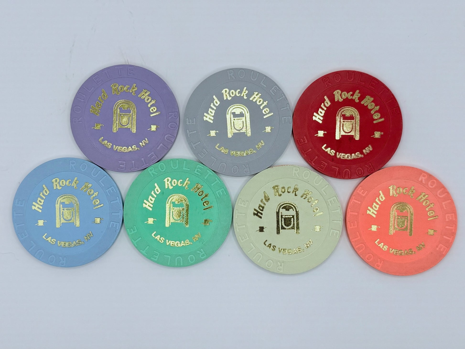 Hard Rock - Las Vegas Nevada 2005 'Set of 7 Roulette Chips - Jukebox' Series 223 Roulette Casino Chip E3340