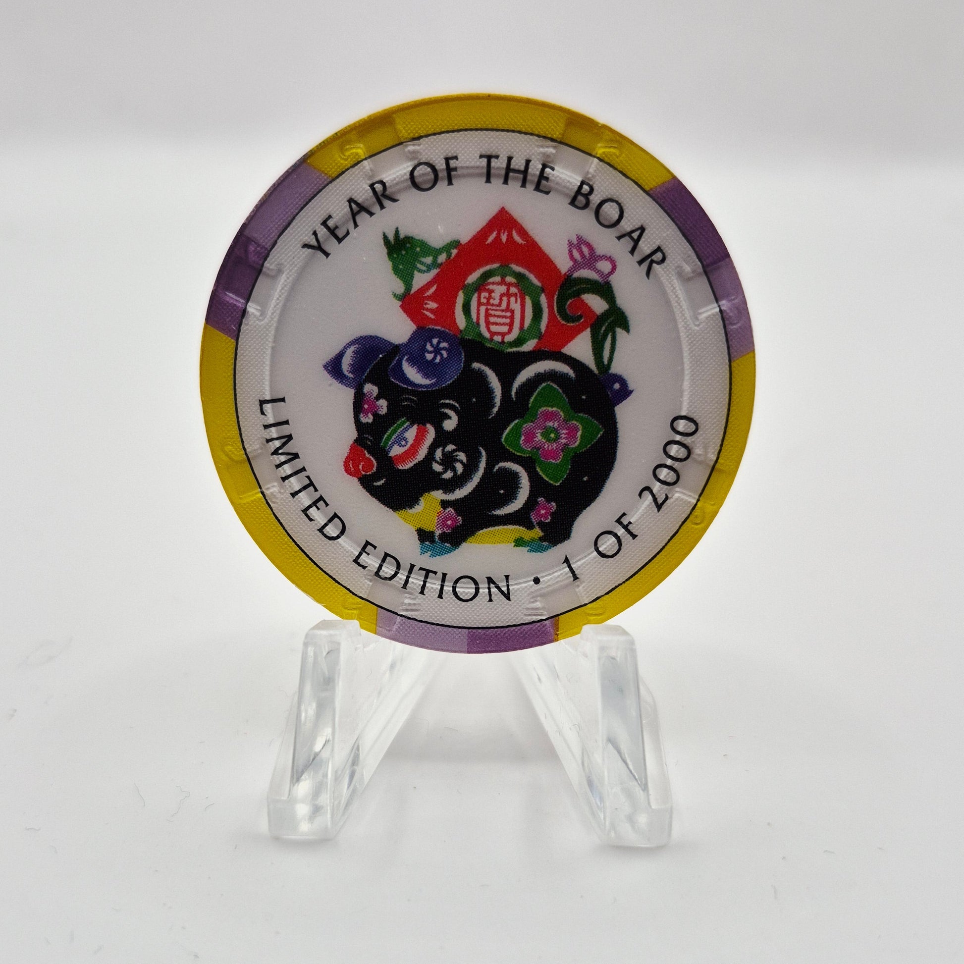 Experience the nostalgia of Crystal Park Casino's 1996 Grand Opening with our limited edition 'Year of the Boar' $5 Casino Chip. This collectible item celebrates the short-lived but memorable casino, open for just one year. Own a piece of history and add a unique touch to your collection.