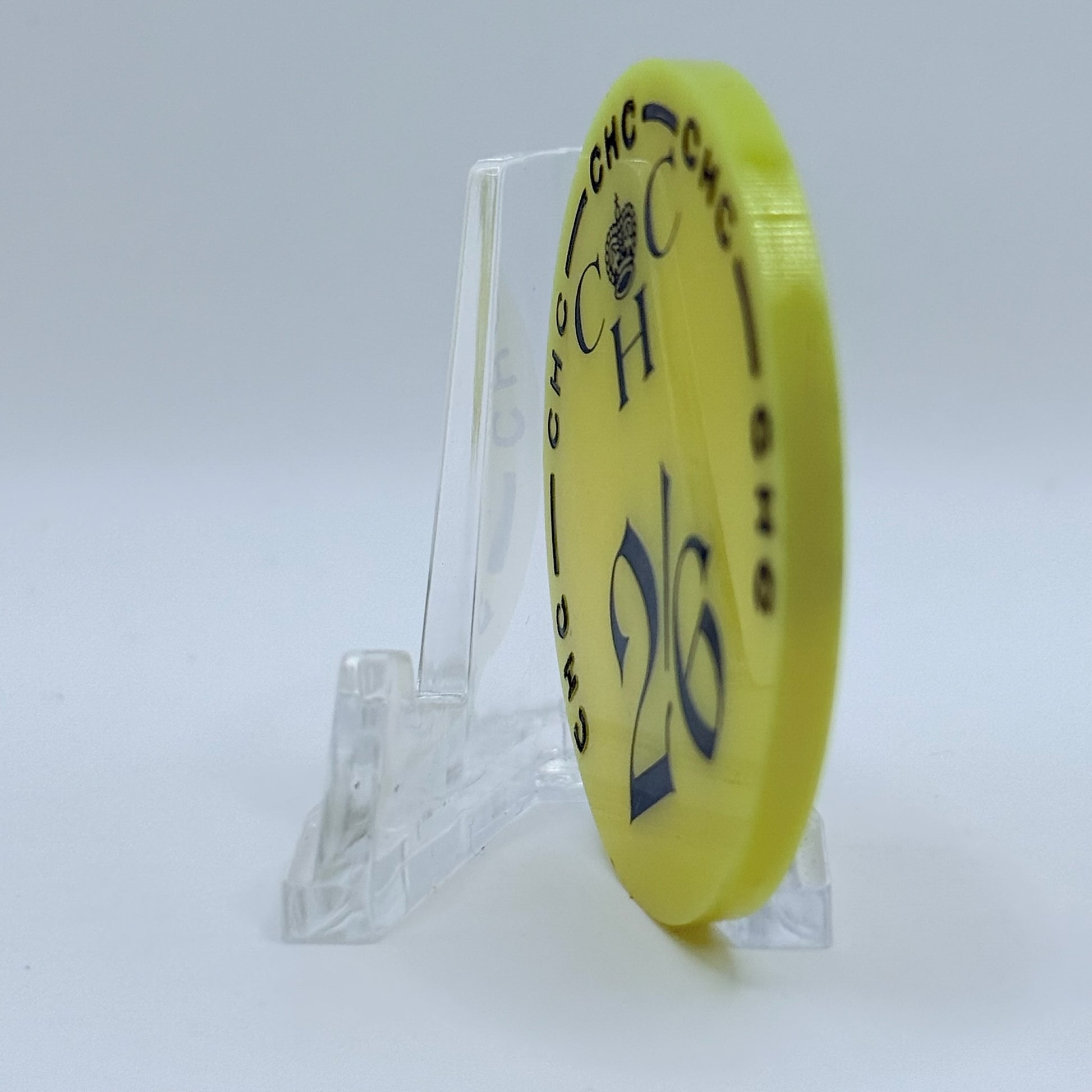 Own a piece of Las Vegas history with this genuine 2/6 chip from the legendary Curzon House Club, open from 1964 to 1984.