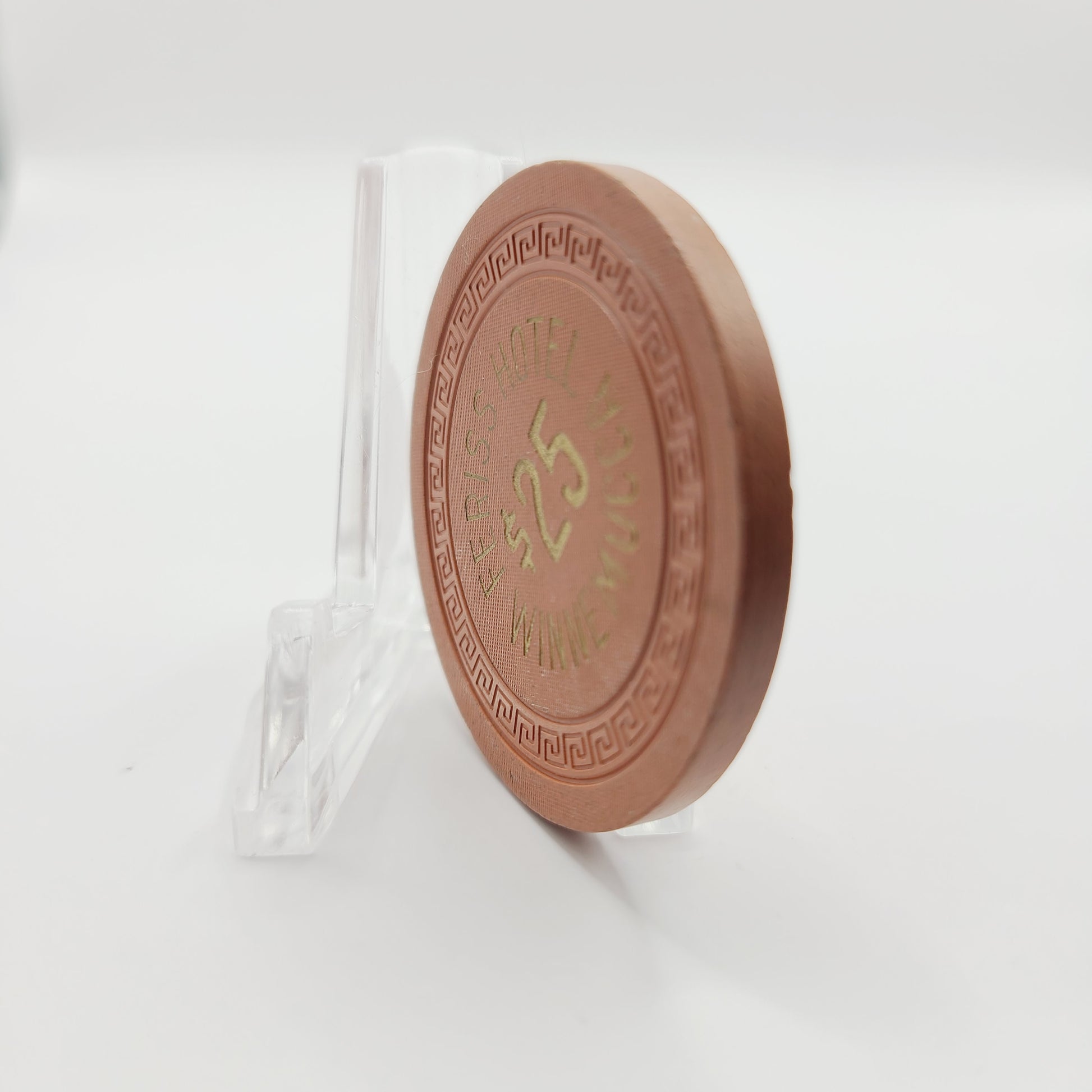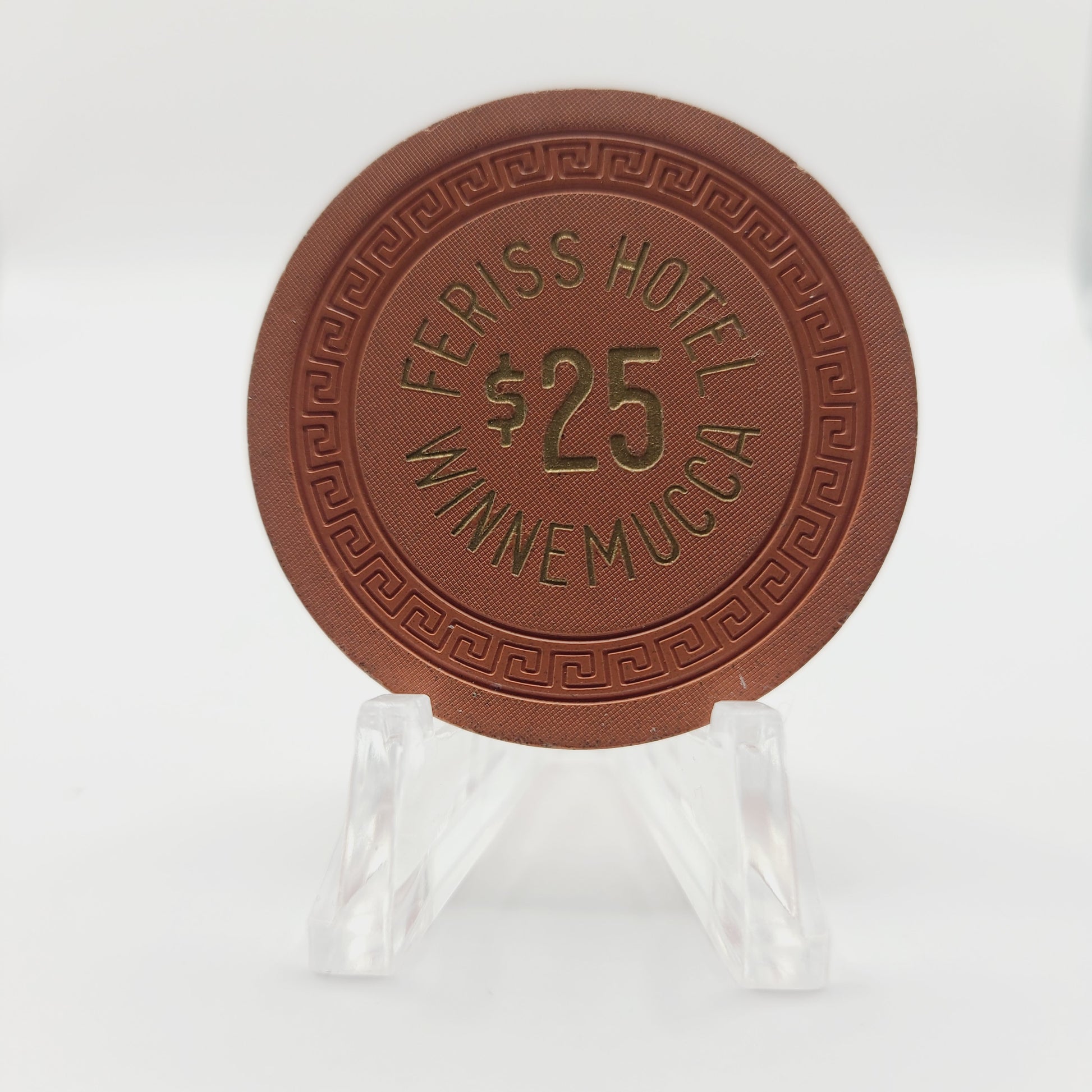 Discover the history of Nevada's Ferris Hotel Casino with this original $25 chip from 1958. Opened from 1948 until 1973, this piece of vintage memorabilia offers a glimpse into the golden age of gambling in Winnemucca. Add a piece of history to your collection today.