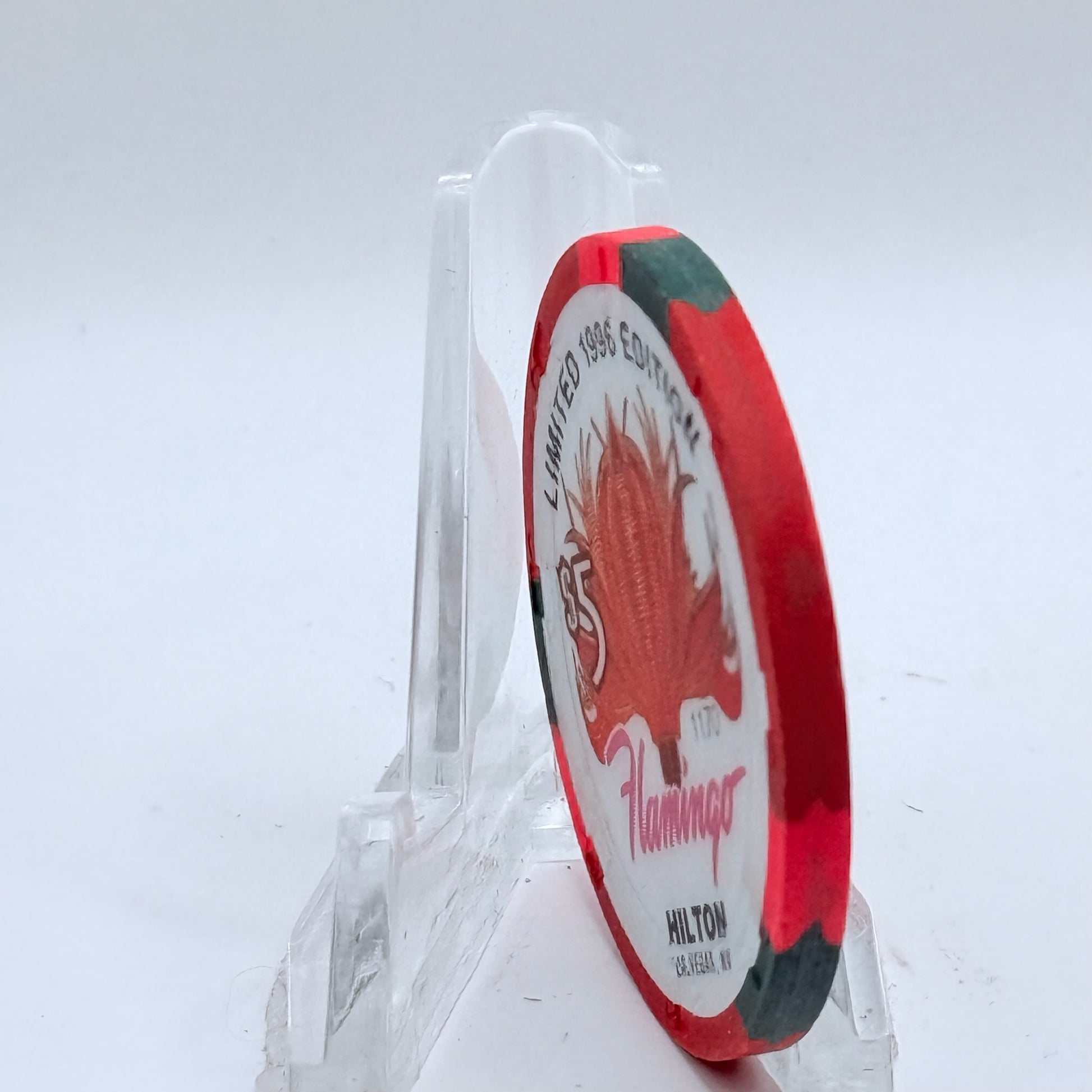 From its first roll in 1970 to its final hand in 2000, the Flamingo Hilton left its mark and this 1996 $5 chip is a lasting reminder.