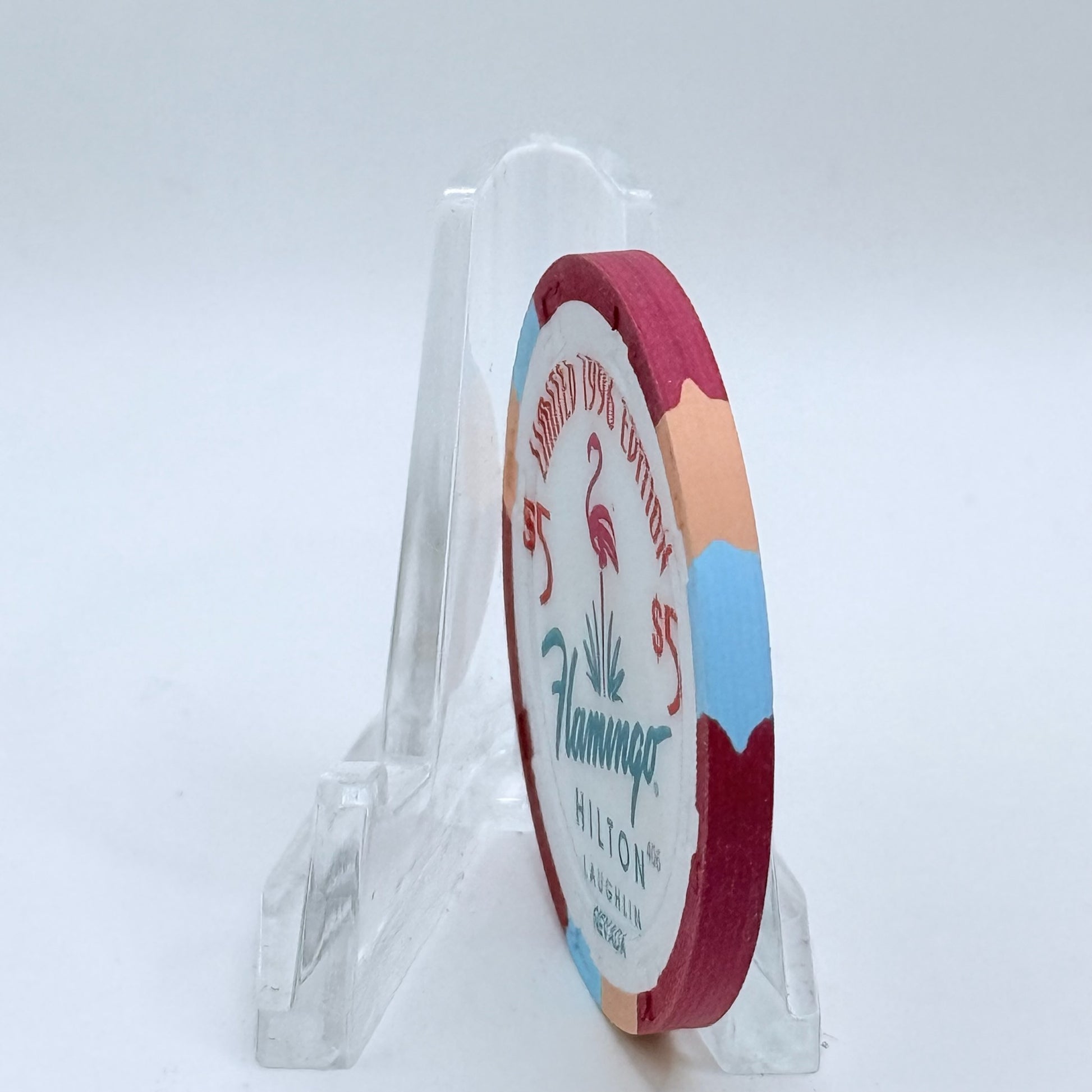 From its first roll in 1990 to its final hand in 2000, the Flamingo Hilton left its mark and this 1996 $5 chip is a lasting reminder.