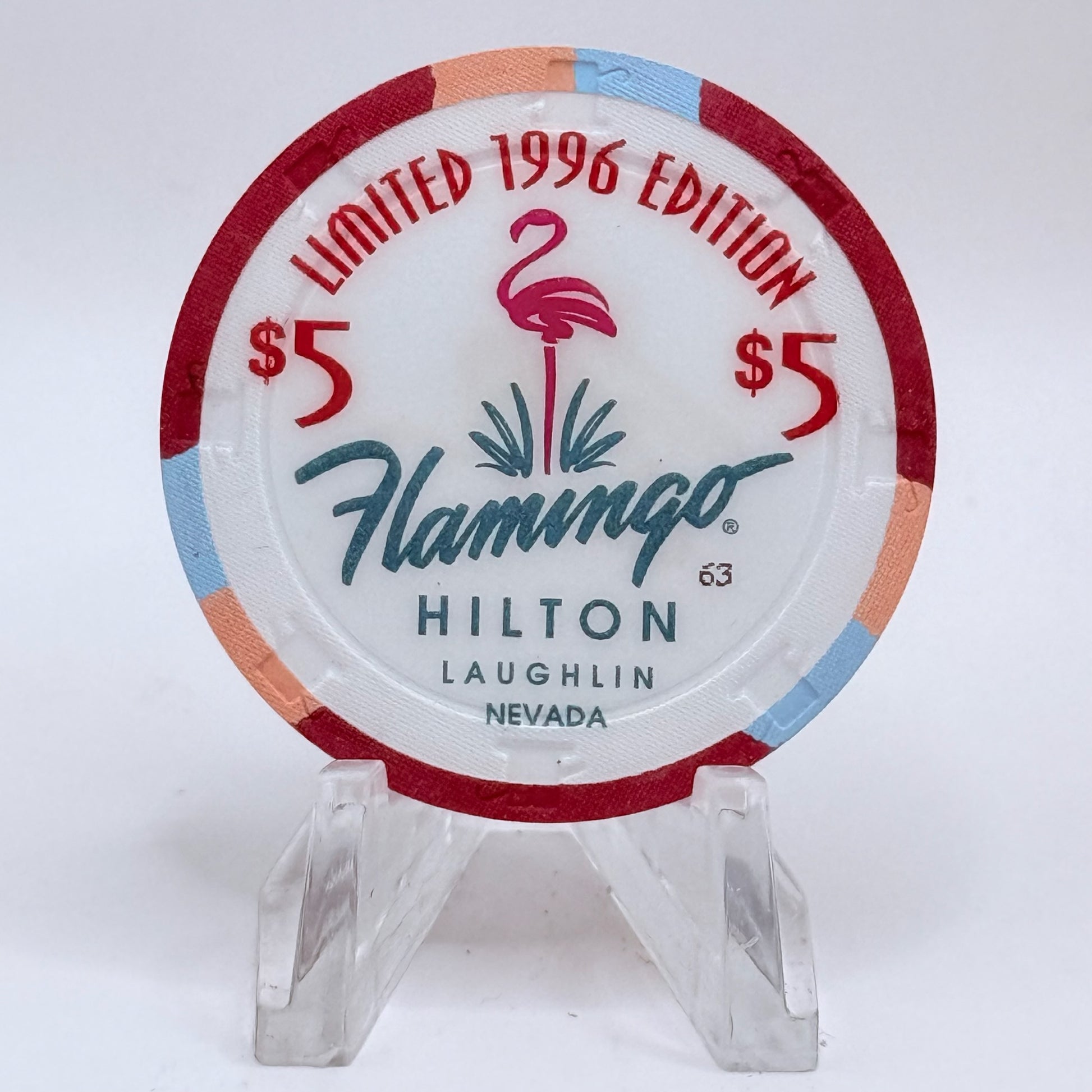 Commemorate the iconic Flamingo Hilton, a fixture from 1990 until 2000, with this authentic 1996 $5 casino