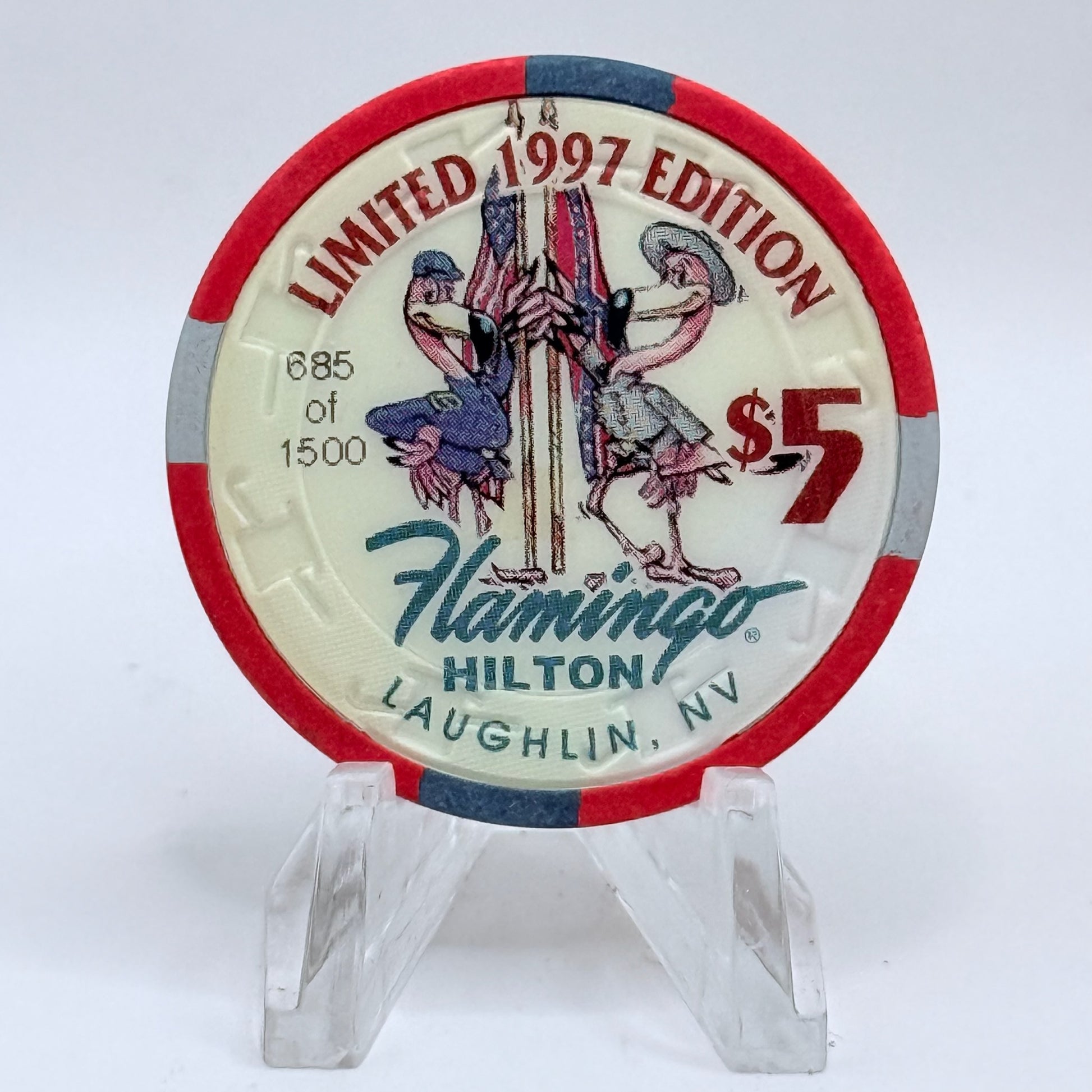 Once gracing the tables of Flamingo Hilton between 1990 and 2000, this 1997 $5 chip now offers collectors a rare piece of casino lore.