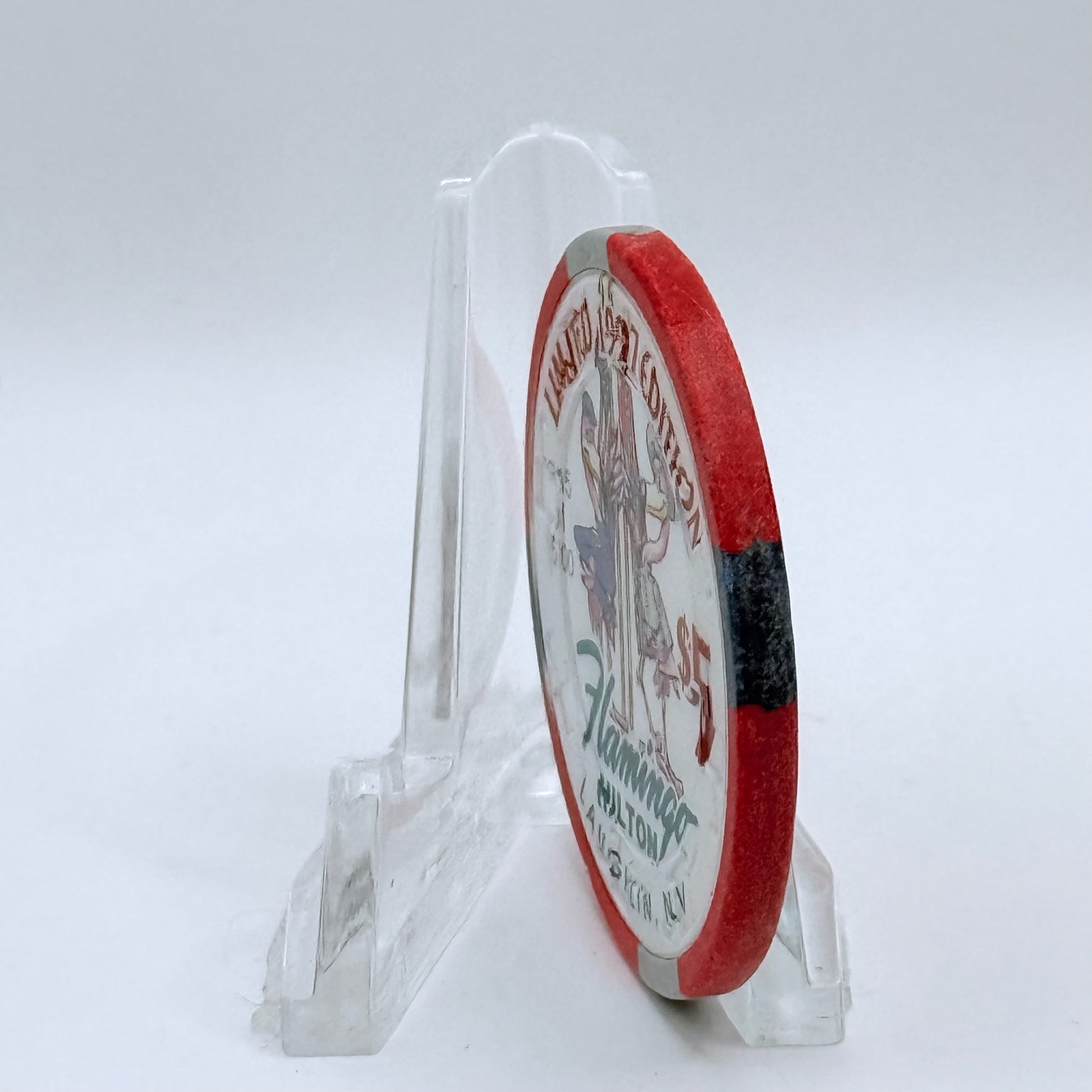 Add a touch of classic Laughlin flair to your collection with this 1997 $5 chip from the historic Flamingo Hilton, open from 1990 to 2000.