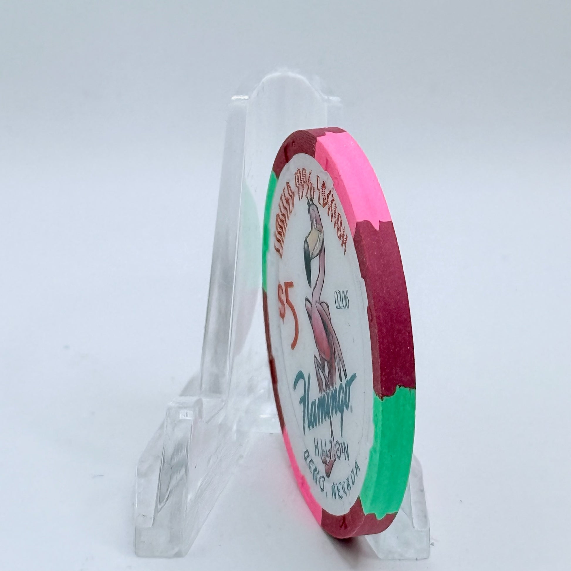 Once gracing the tables of Flamingo Hilton between 1992 and 2001, this 1996 $5 chip now offers collectors a rare piece of casino lore.