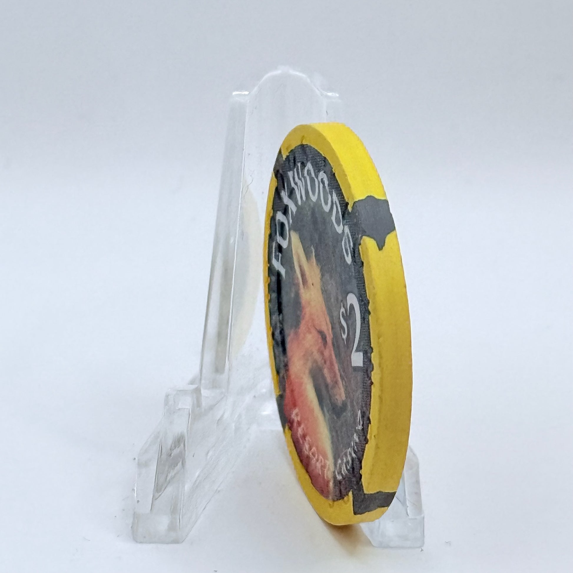 Straight from the felt of Foxwoods, this $2 chip is a classic piece of Ledyard casino culture.