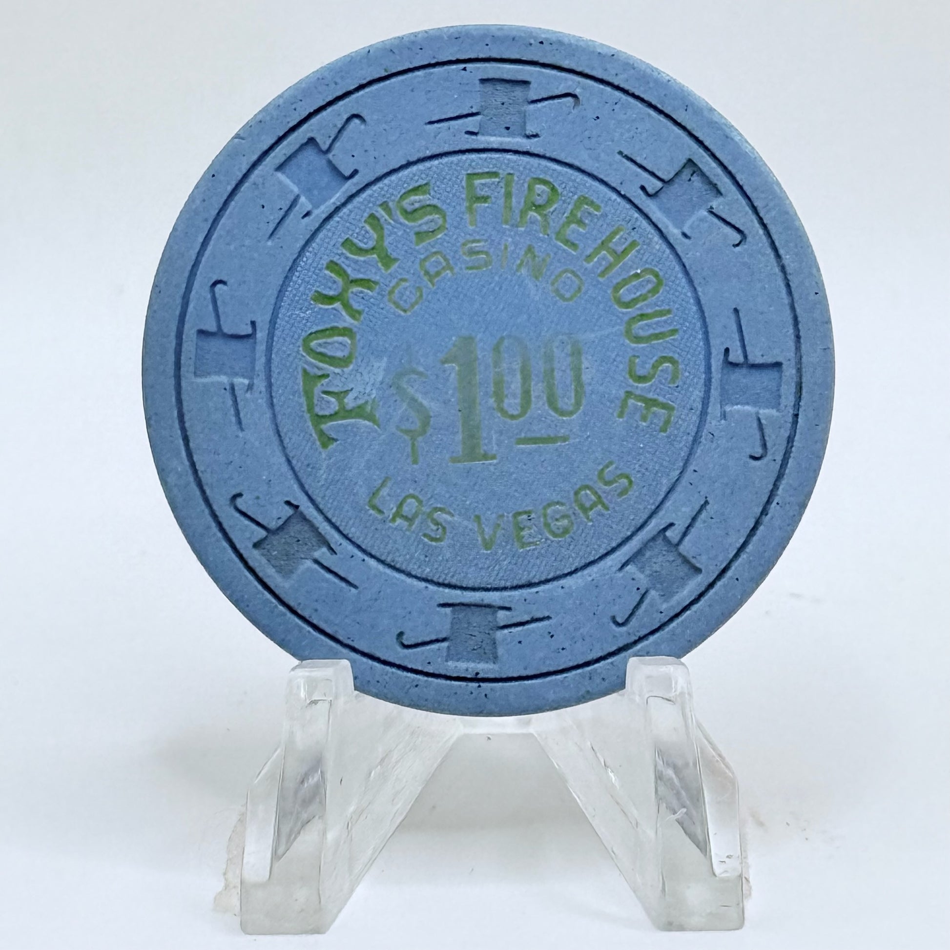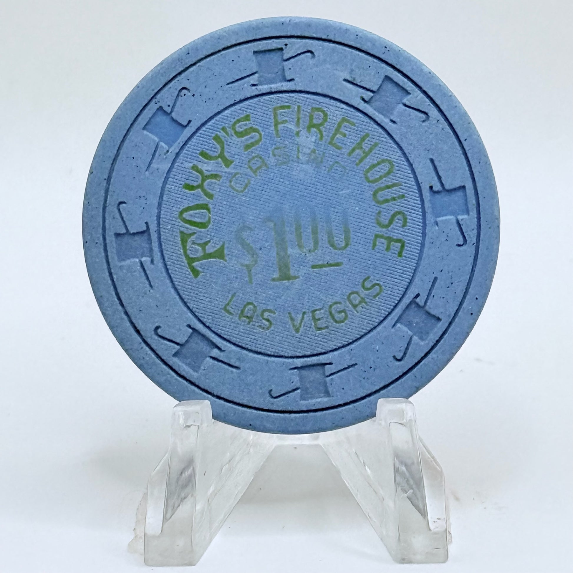 Add a touch of classic Las Vegas flair to your collection with this 1980s $1 chip from the historic Foxy's Firehouse, open from 1976 to 1988.