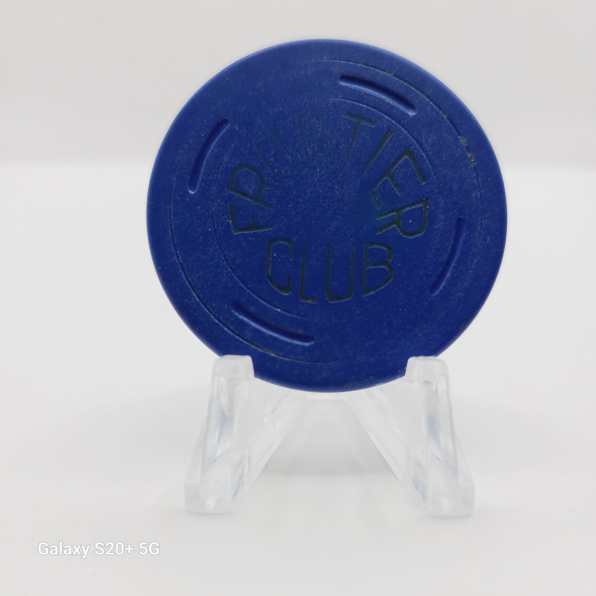 This Frontier Club "Card Room" casino chip is a piece of history from Porterville, California. Opened in 1948 and closed in 1981, this chip represents a bygone era of gambling and entertainment. Add it to your collection and own a tangible piece of the past.
