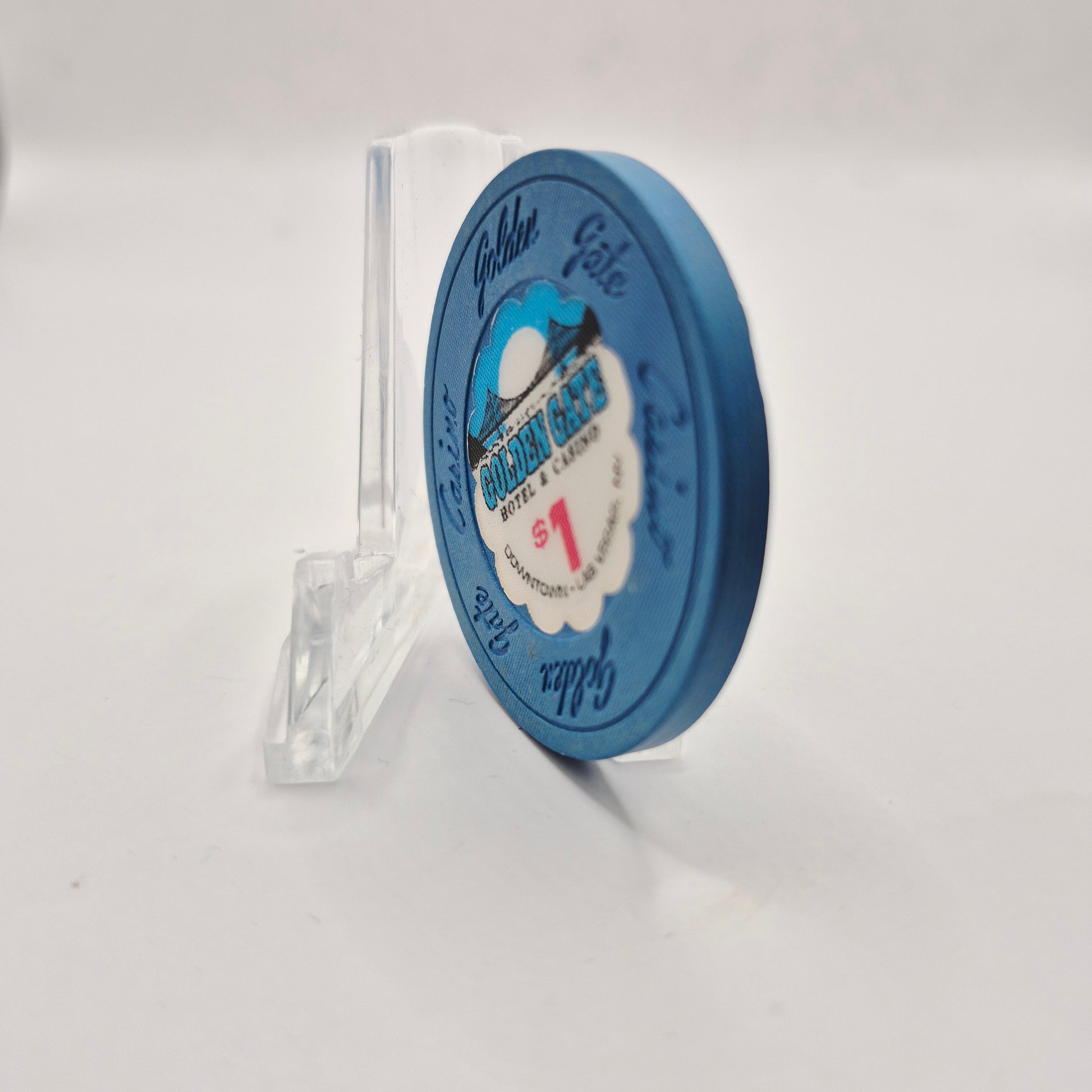 Discover the historic Golden Gate Casino, opened in 1956 in Las Vegas, Nevada. Own a piece of history with this authentic $1 casino chip from 2001 (N1713).
