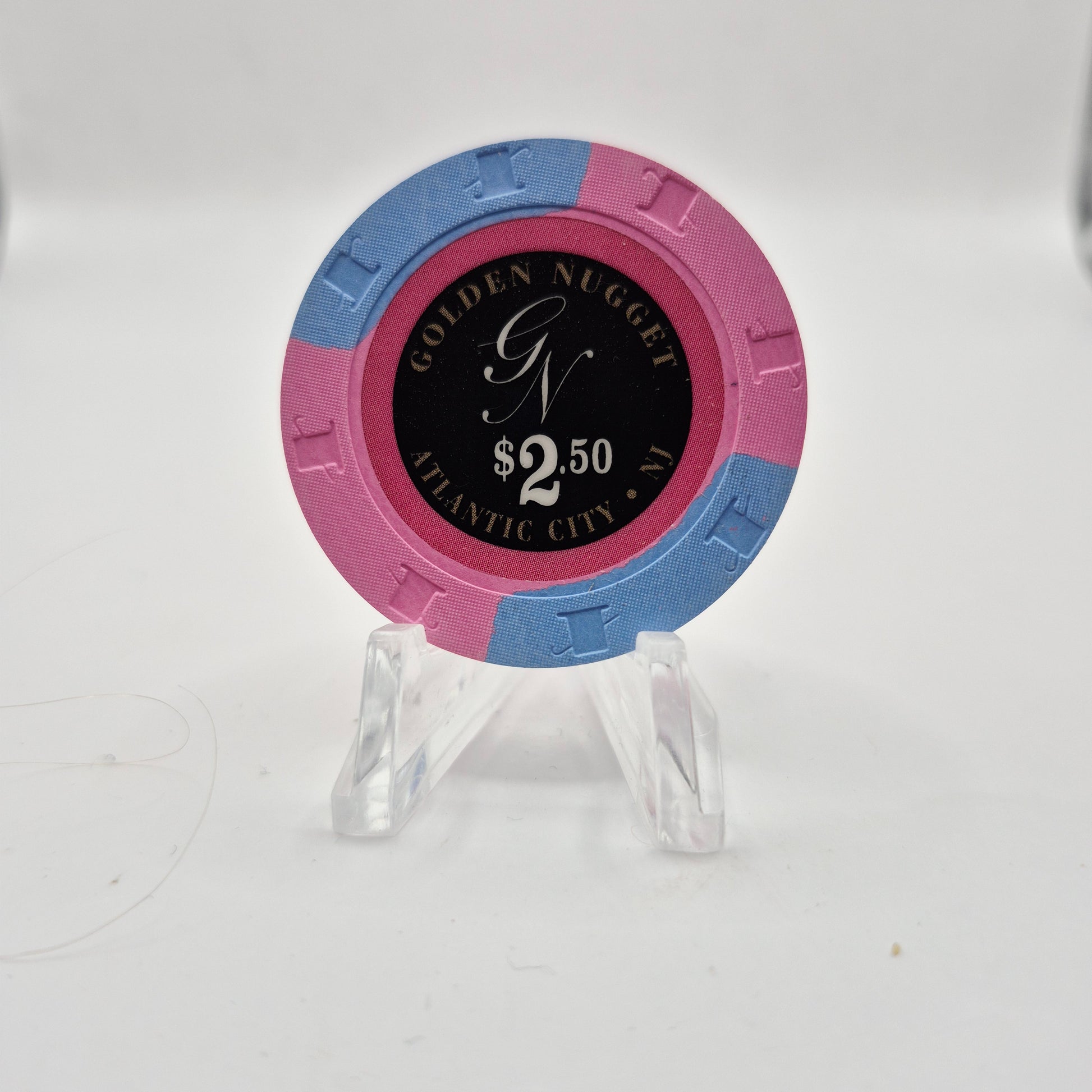 This $2.50 casino chip from the Golden Nugget 'Landry' Hotel Casino in Atlantic City, New Jersey is a piece of history from the casino's opening in 2011. With this chip, you can possess a tangible and valuable reminder of the casino's beginnings. Add it to your collection today!