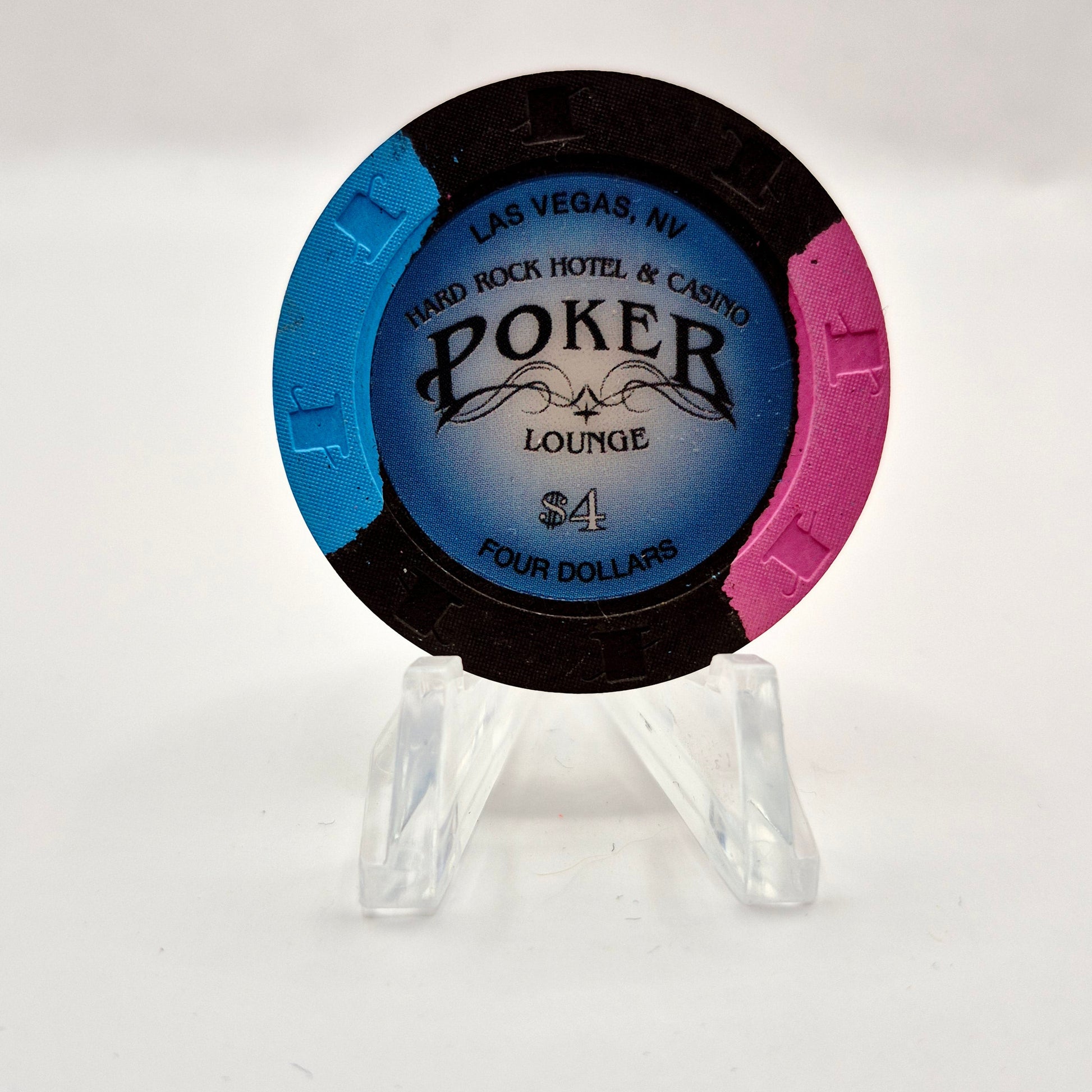 Discover the history of Las Vegas with this vintage $4 poker lounge chip from the now-closed Hard Rock Hotel Casino. Opened in 1995, this iconic establishment held its place on the strip for 25 years before closing in 2020. Add this piece of memorabilia to your collection today.