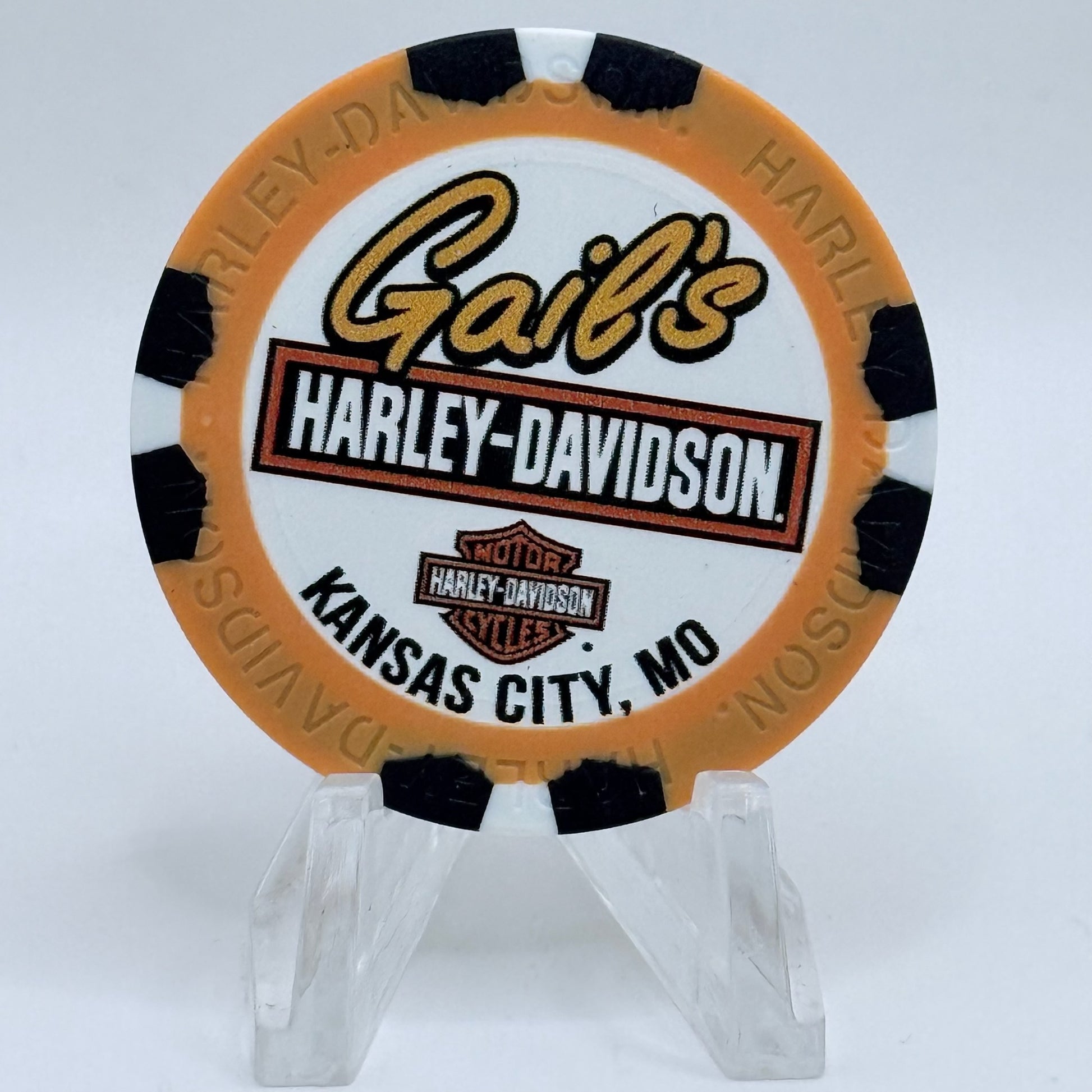 Here from Grandview, Missouri, comes this chip from Harley-Davidson - Gail's, a must-have for any serious collector.