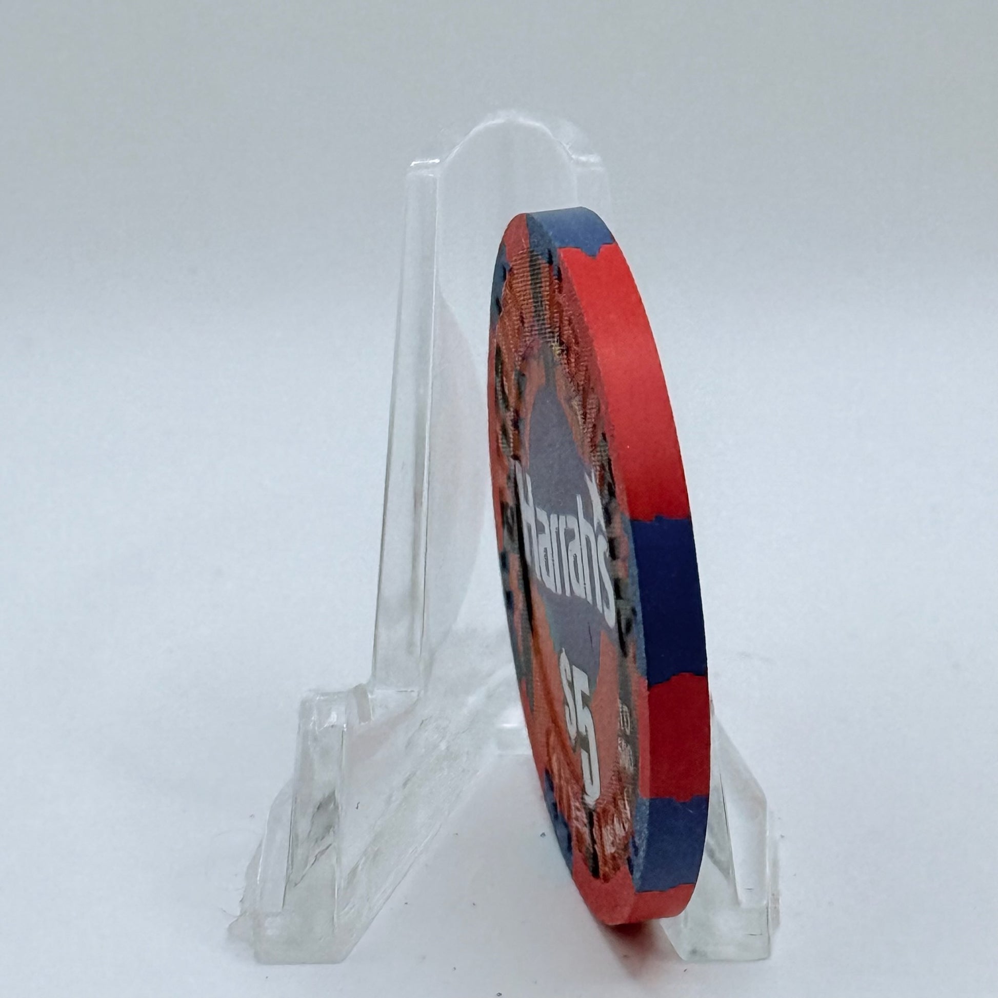 Bring home the allure of Las Vegas's casino floors with this authentic 2001 $5 chip from the storied Harrah's.