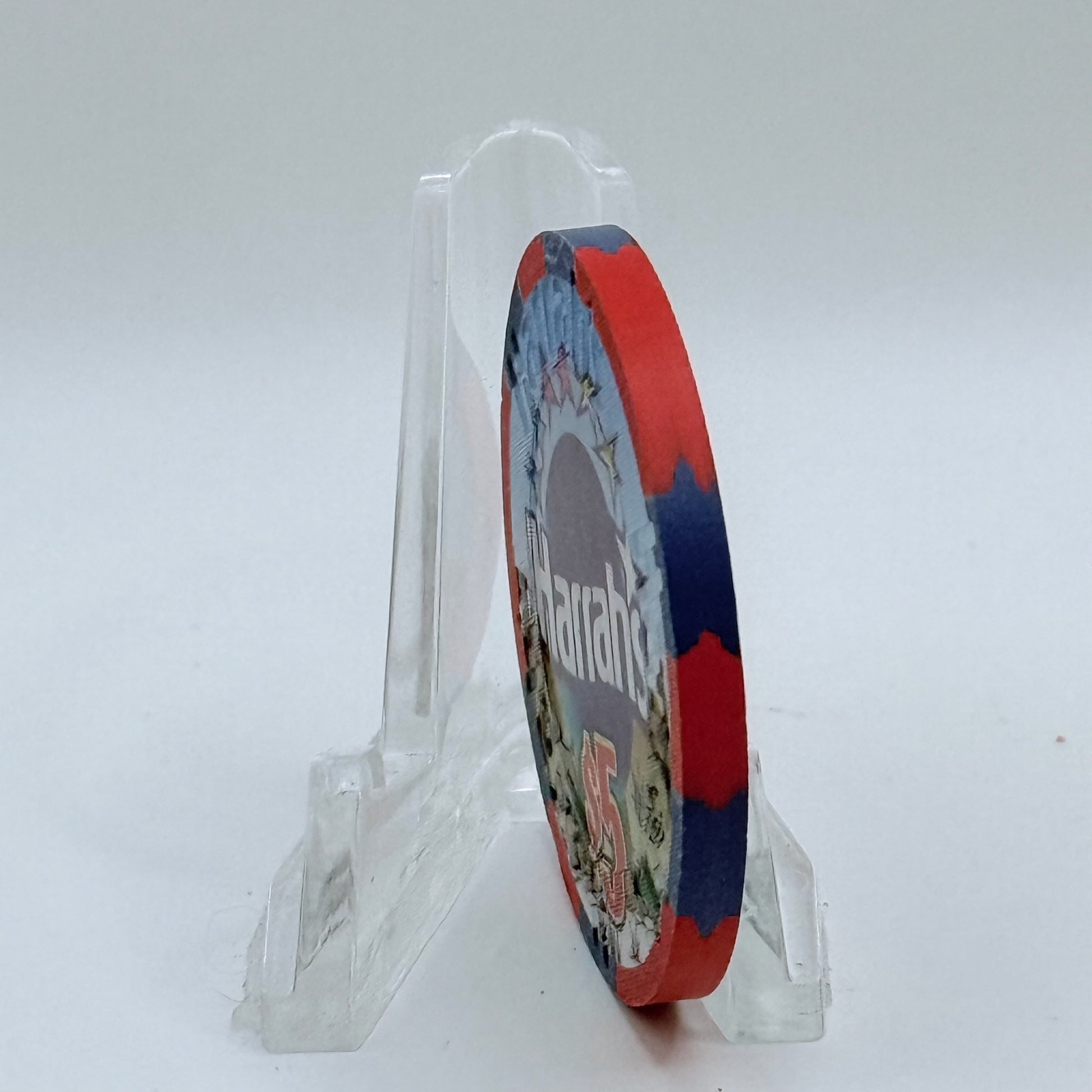 Step back in time to Las Vegas with this 2001 $5 chip from Harrah's. A relic from an era when casinos ruled the night.