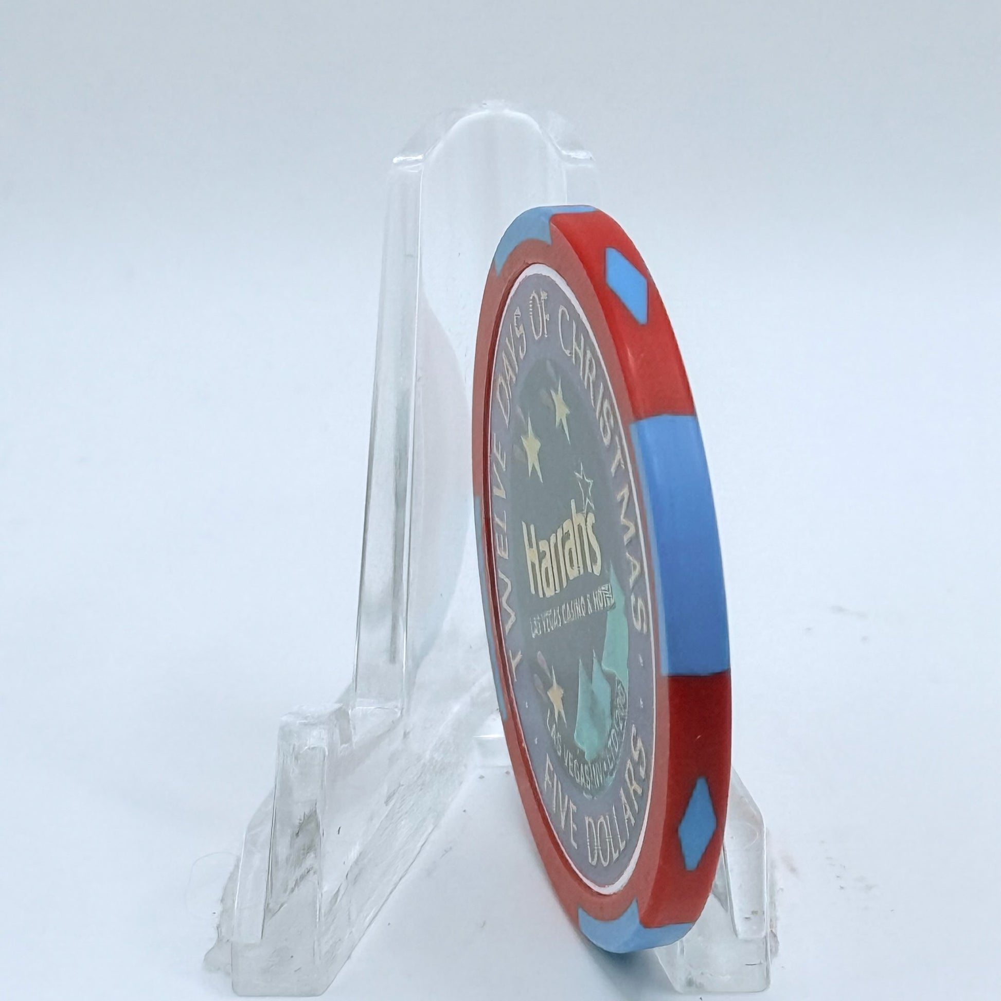Harrah's Las Vegas Nevada 2002 'Eighth Day Of Christmas - Eight Maids A Milking' LE $5 Casino Chip E0957