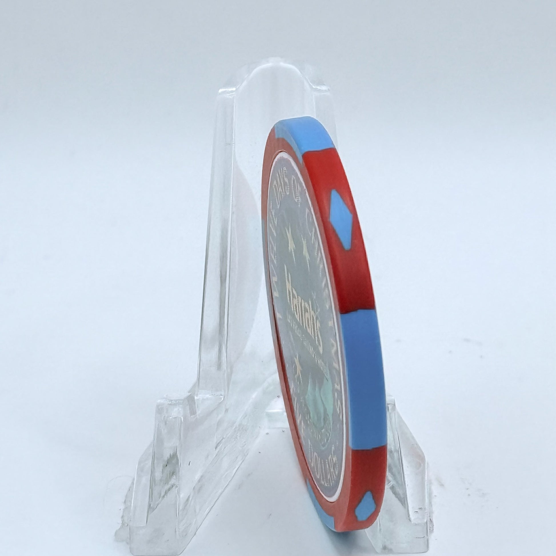 From the vibrant tables of Harrah's comes this 2002 $5 chip — a lasting memento from the golden age of gaming.