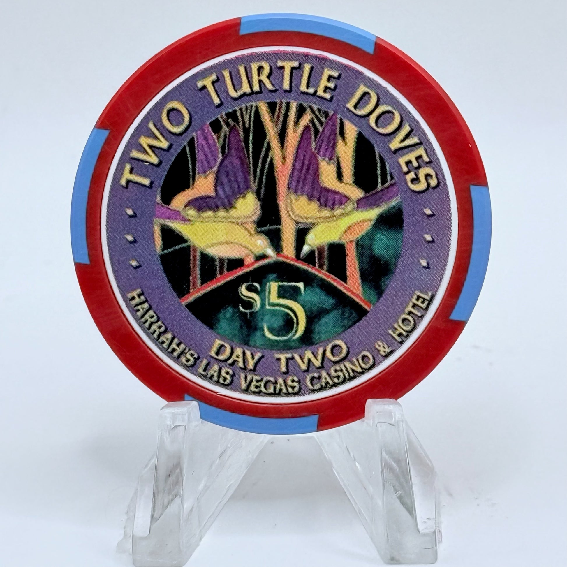 Harrah's Las Vegas Nevada 2002 'Second Day Of Christmas - Two Turtle Doves' LE $5 Casino Chip E0956