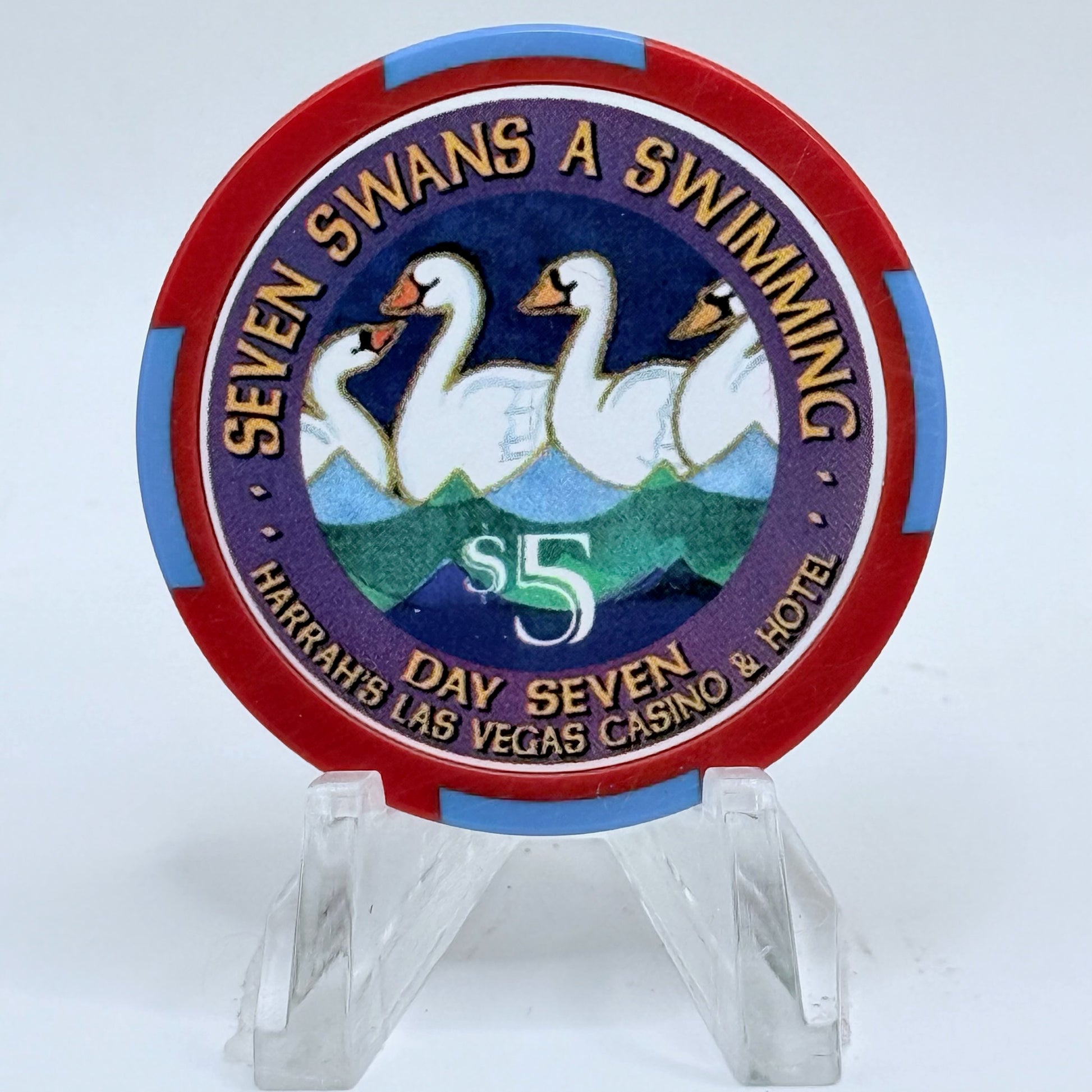 Harrah's Las Vegas Nevada 2002 'Seventh Day Of Christmas - Seven Swans A Swimming' LE $5 Casino Chip E0946