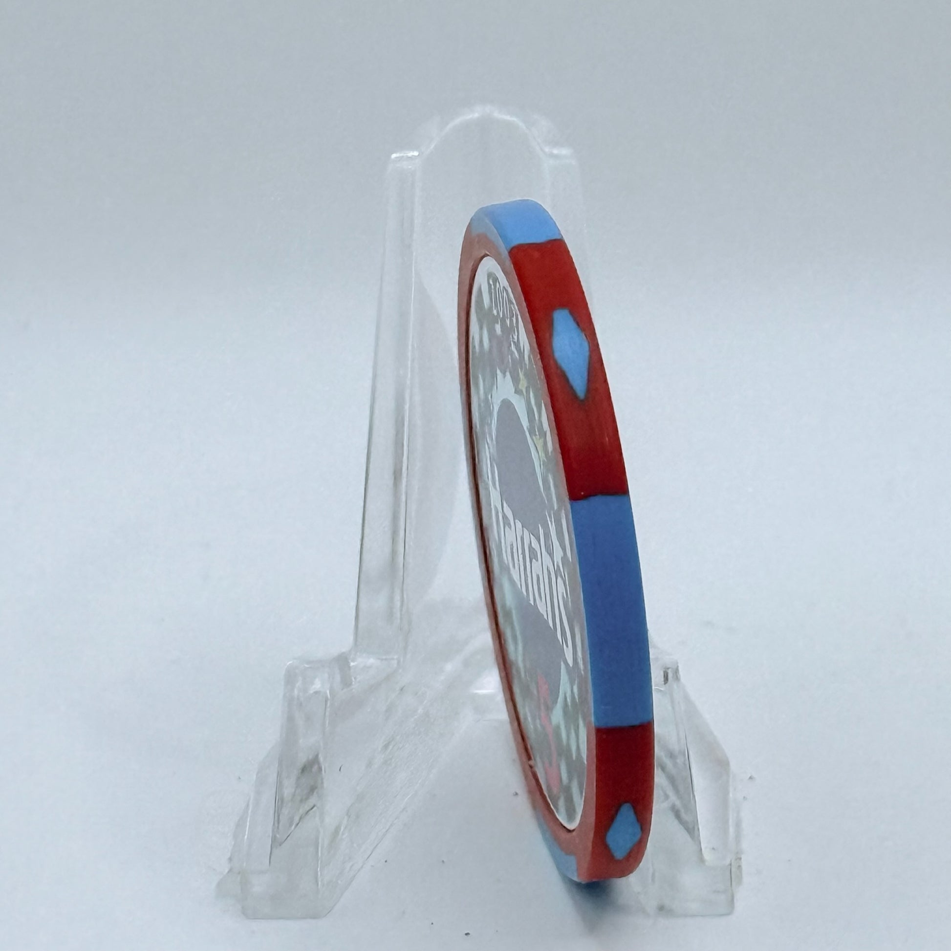 From the vibrant tables of Harrah's comes this 2003 $5 chip — a lasting memento from the golden age of gaming.