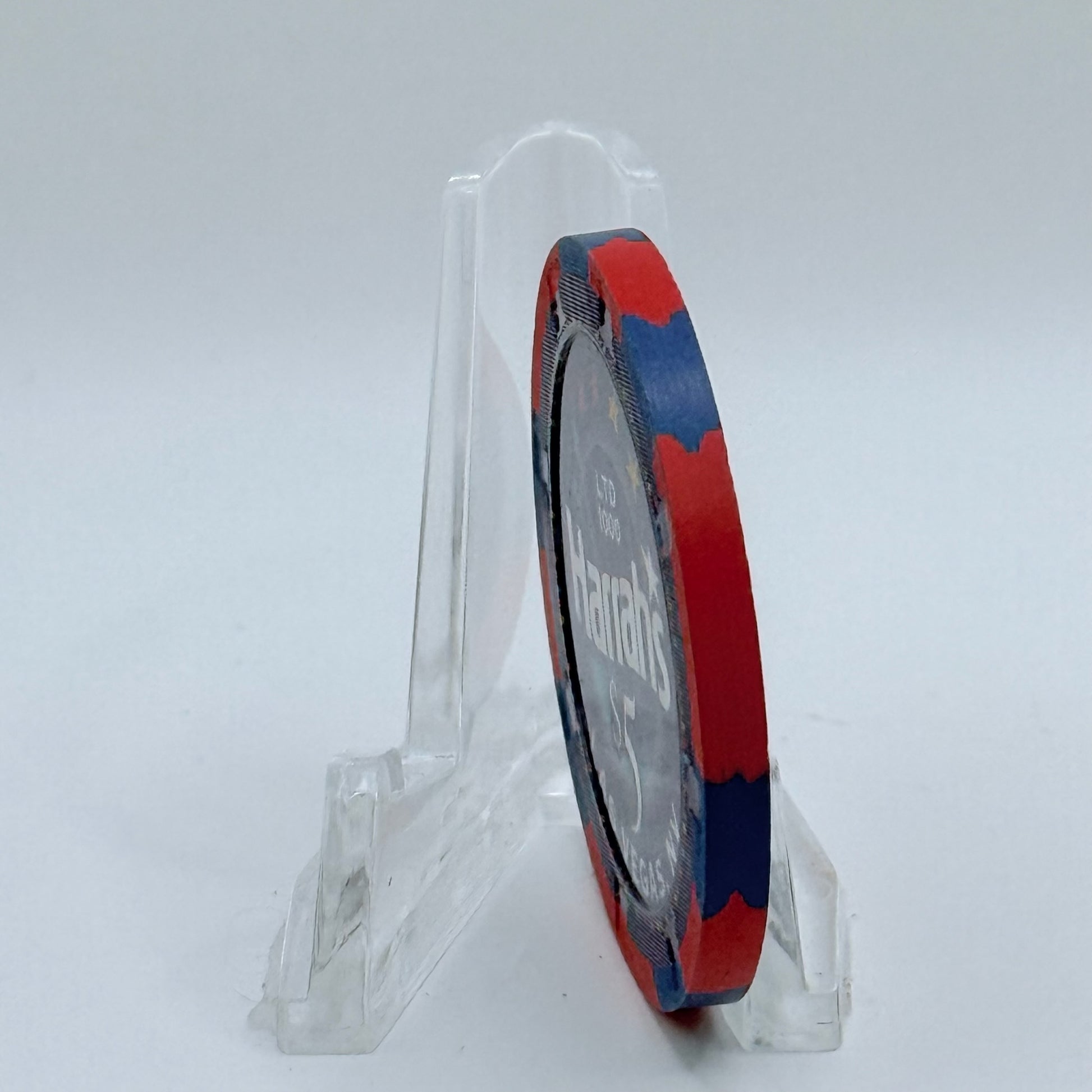 Relive the excitement of Harrah's with this authentic $5 chip, a token of gaming history from Las Vegas, Nevada.