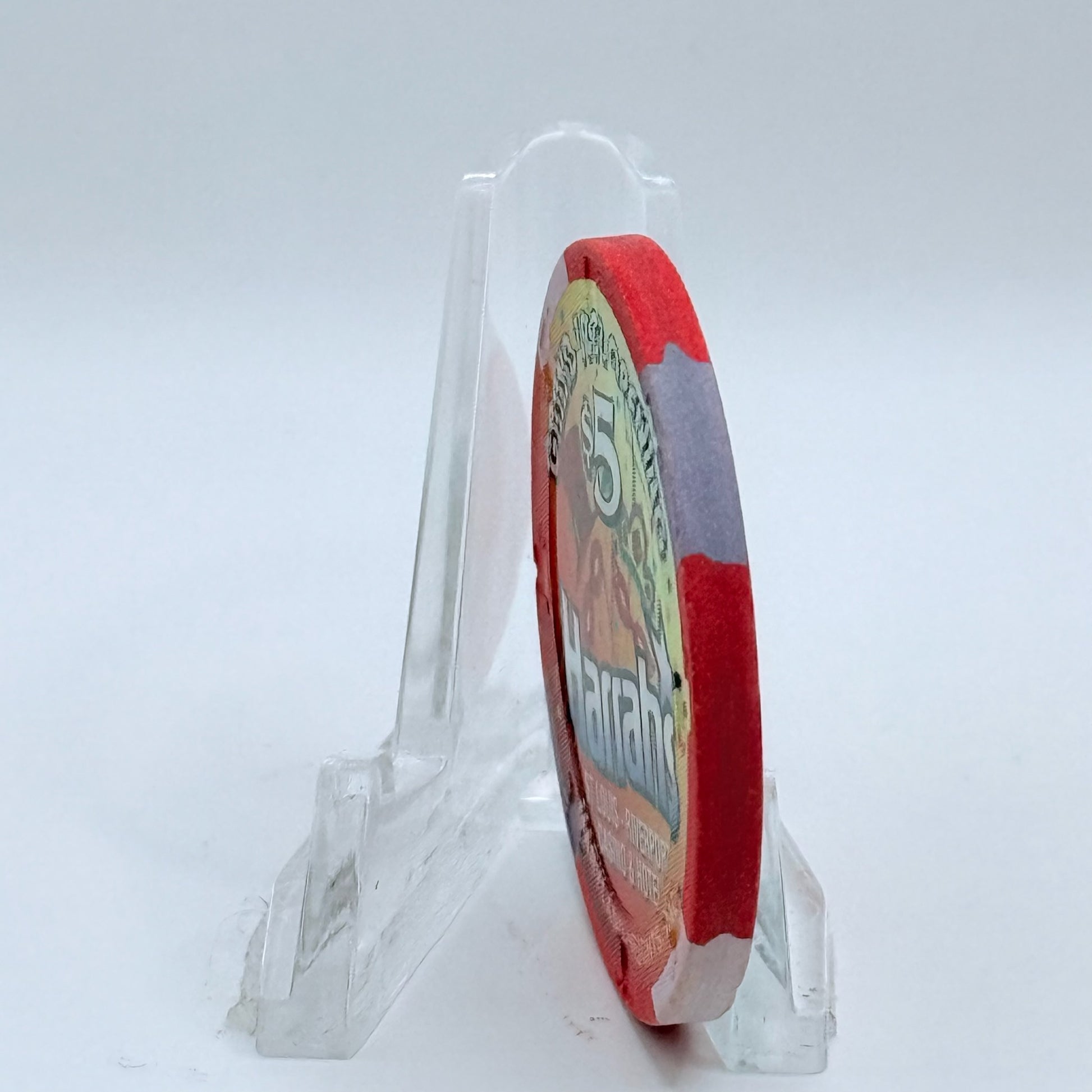 Own a piece of gambling history with this genuine 1997 $5 chip from the legendary Harrah's, open from 1997 to 2012.