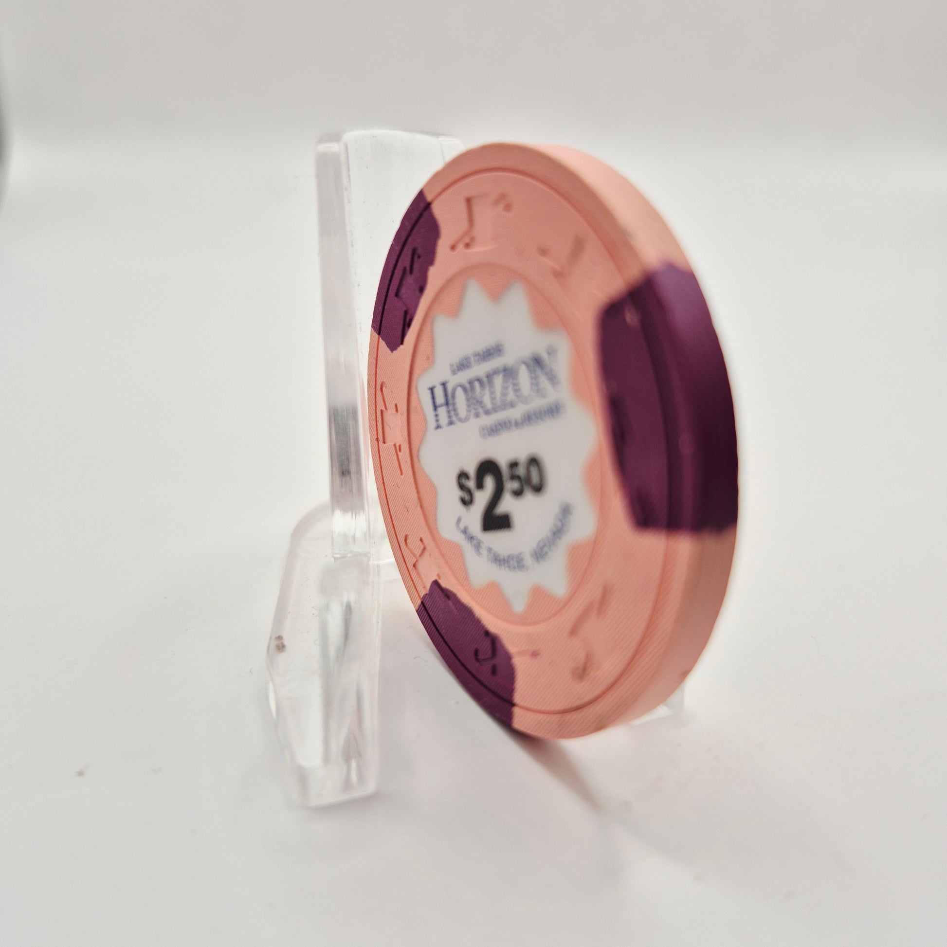 "Discover the history of Horizon Resort Casino Lake Tahoe Nevada with this 1990 $2.50 chip, a collector's item from the now closed establishment. Opened in 1990, this casino operated for 24 years before closing its doors in 2014. Own a piece of gaming history today."