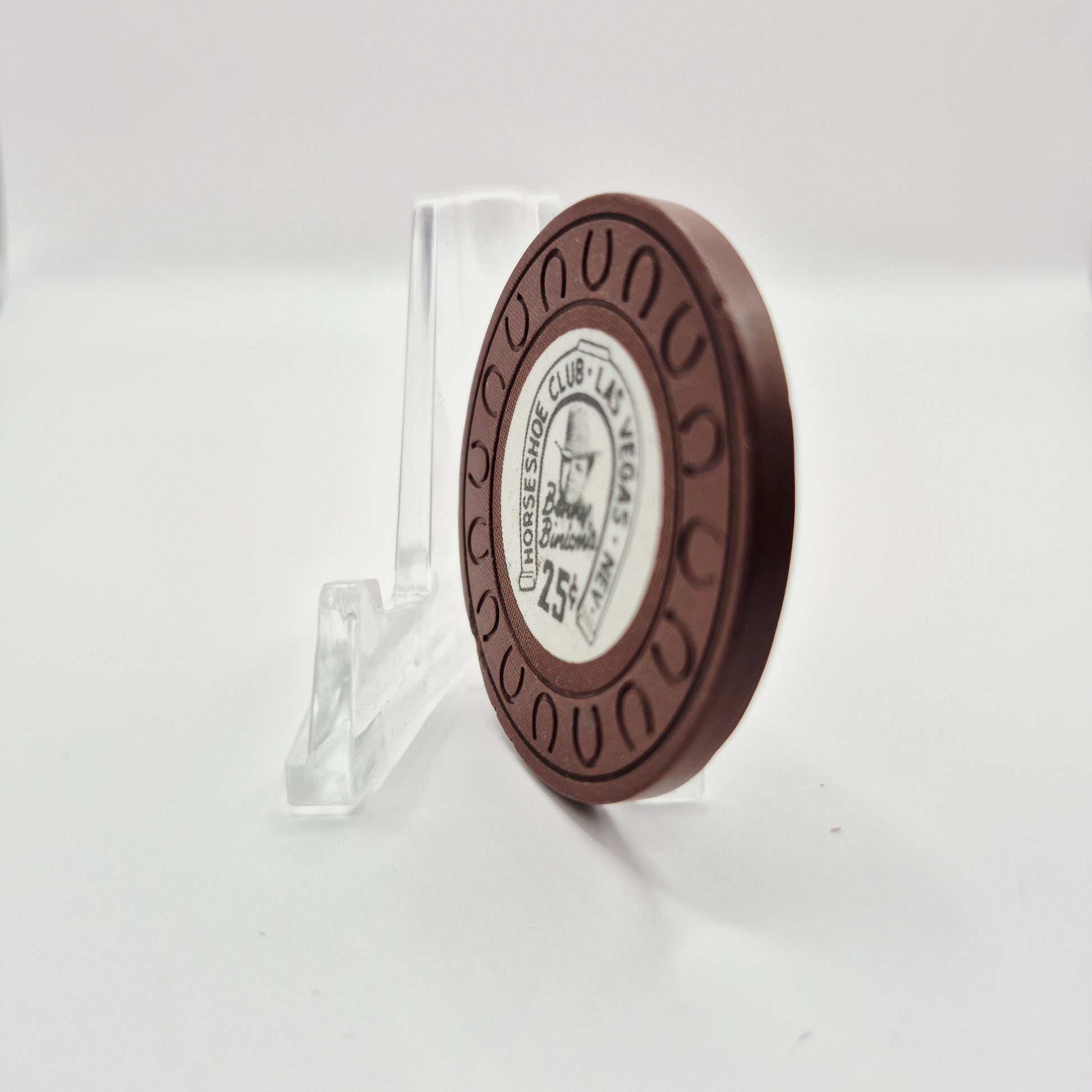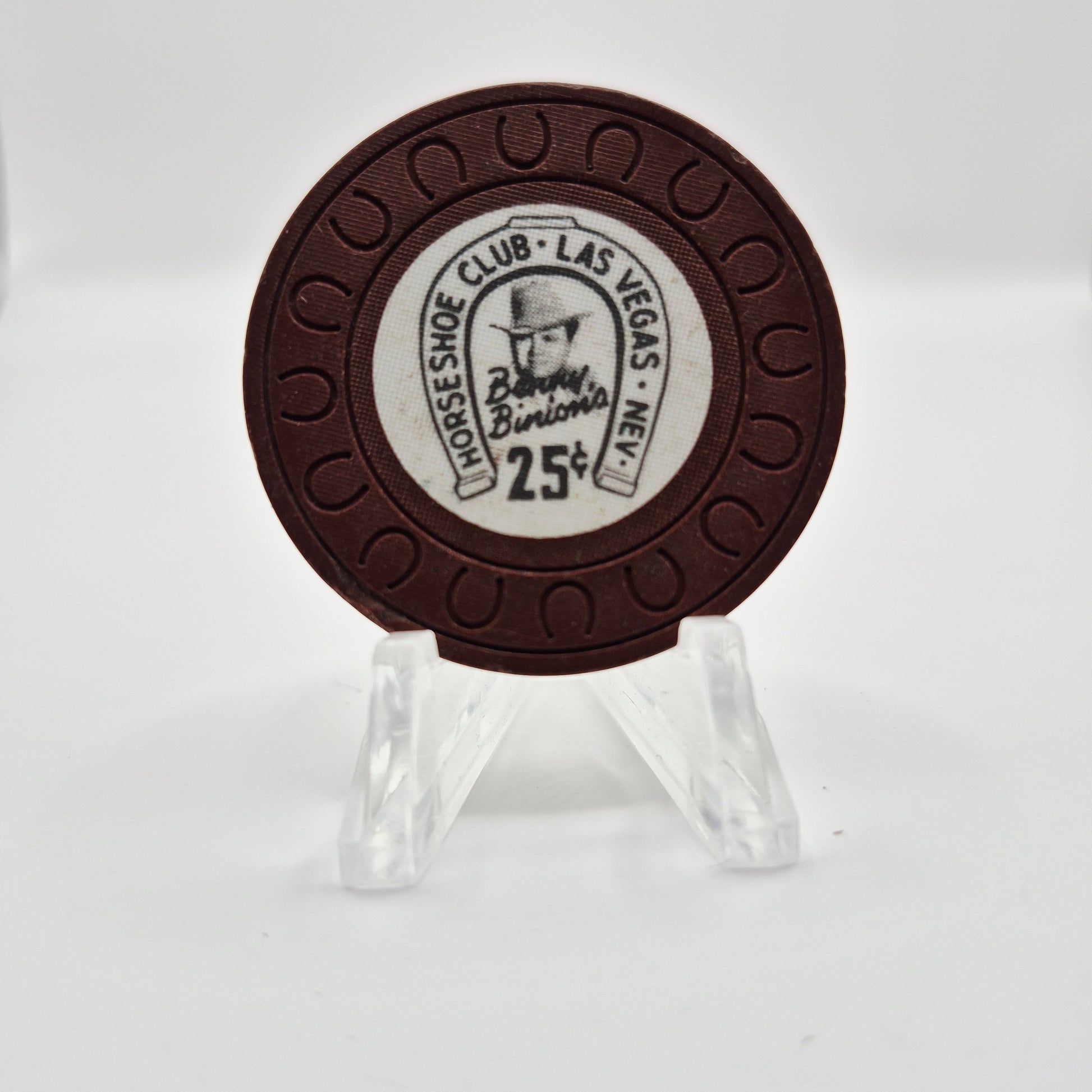 This Horseshoe Casino Las Vegas NV 1976 $.25 chip is in nice condition. Featuring the iconic Las Vegas Horseshoe logo, this chip is a great collector's item from an iconic Vegas landmark.