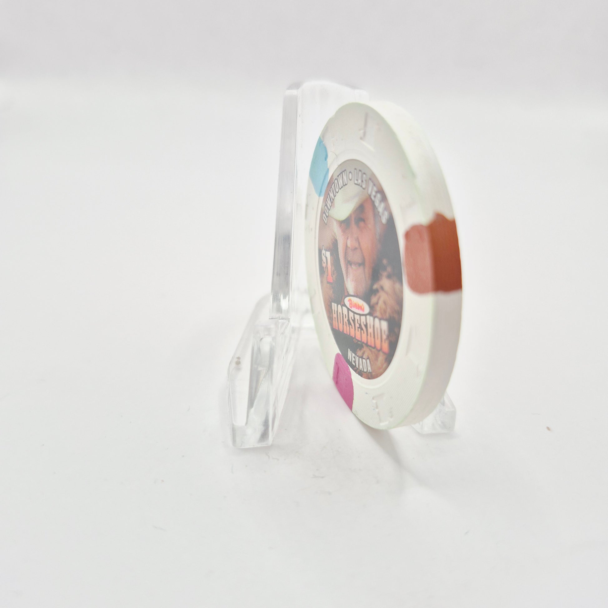 "The Horseshoe Club at Binion's Las Vegas, Nevada, closed its doors in 2004, making this $1 chip a valuable piece of casino history. Own a piece of the past with this E3132 chip."