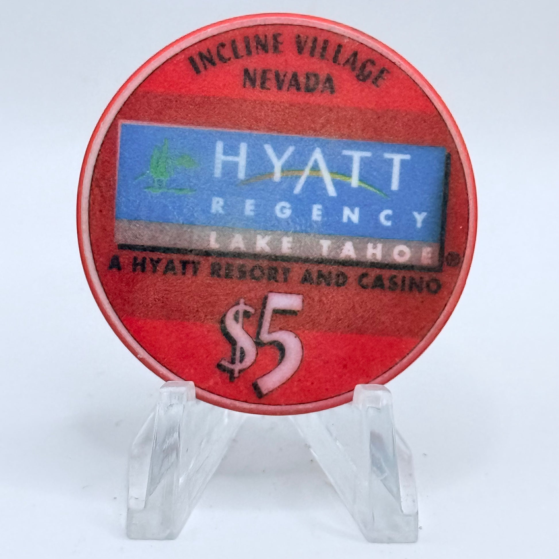 Commemorate the iconic Hyatt Regency (Lake Tahoe), a fixture from 1990 until 2016, with this authentic 2000 $5 casino