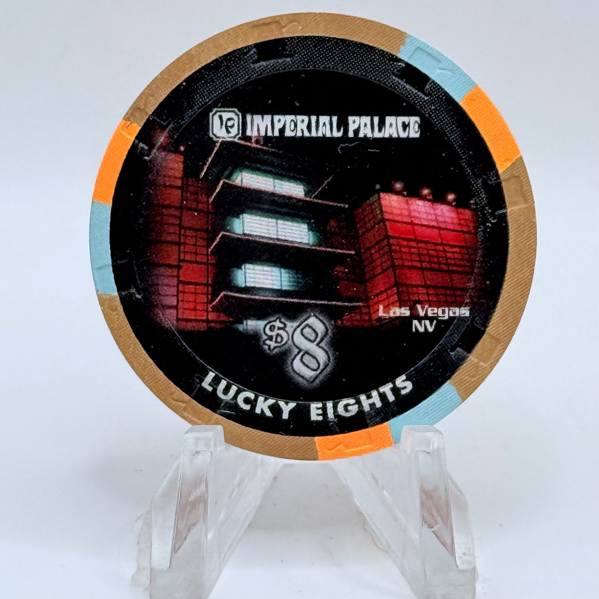 Own a piece of gambling history with this genuine 2008 $8 chip from the legendary Imperial Palace, open from 1979 to 2012.