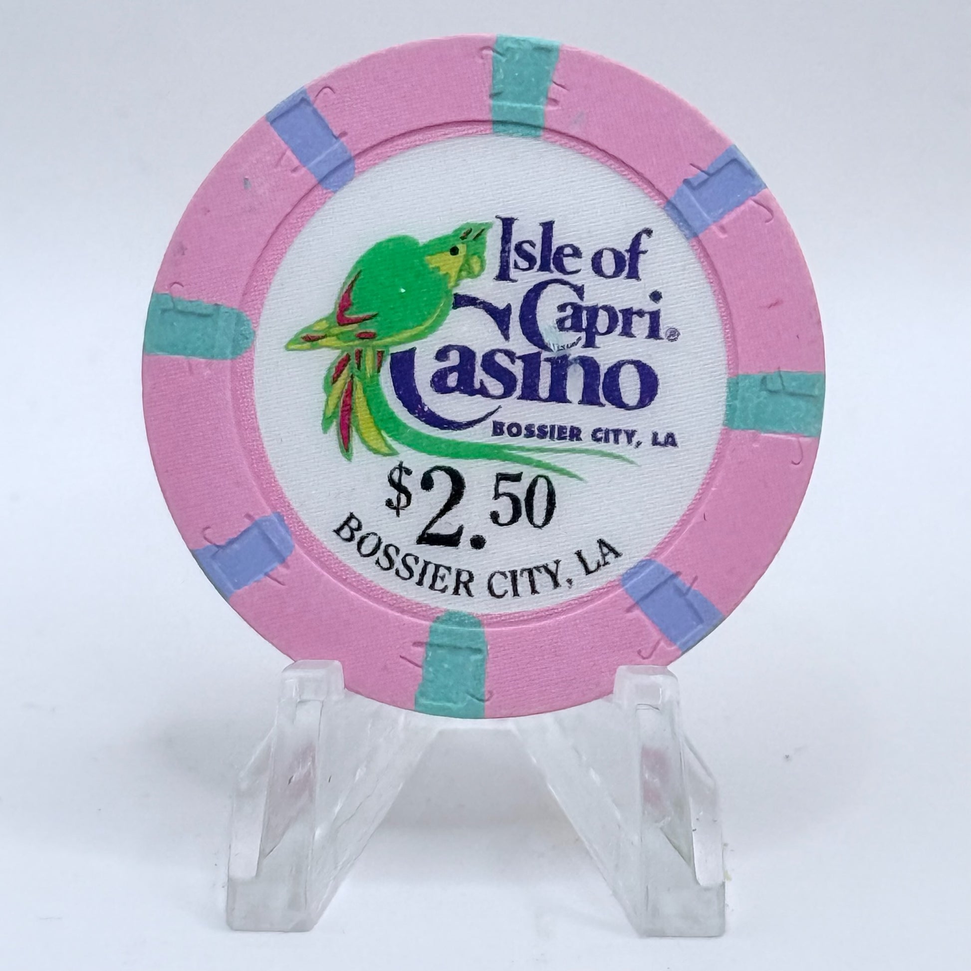 Once gracing the tables of Isle of Capri - Bossier City between 1994 and 2006, this $2.50 chip now offers collectors a rare piece of casino lore.