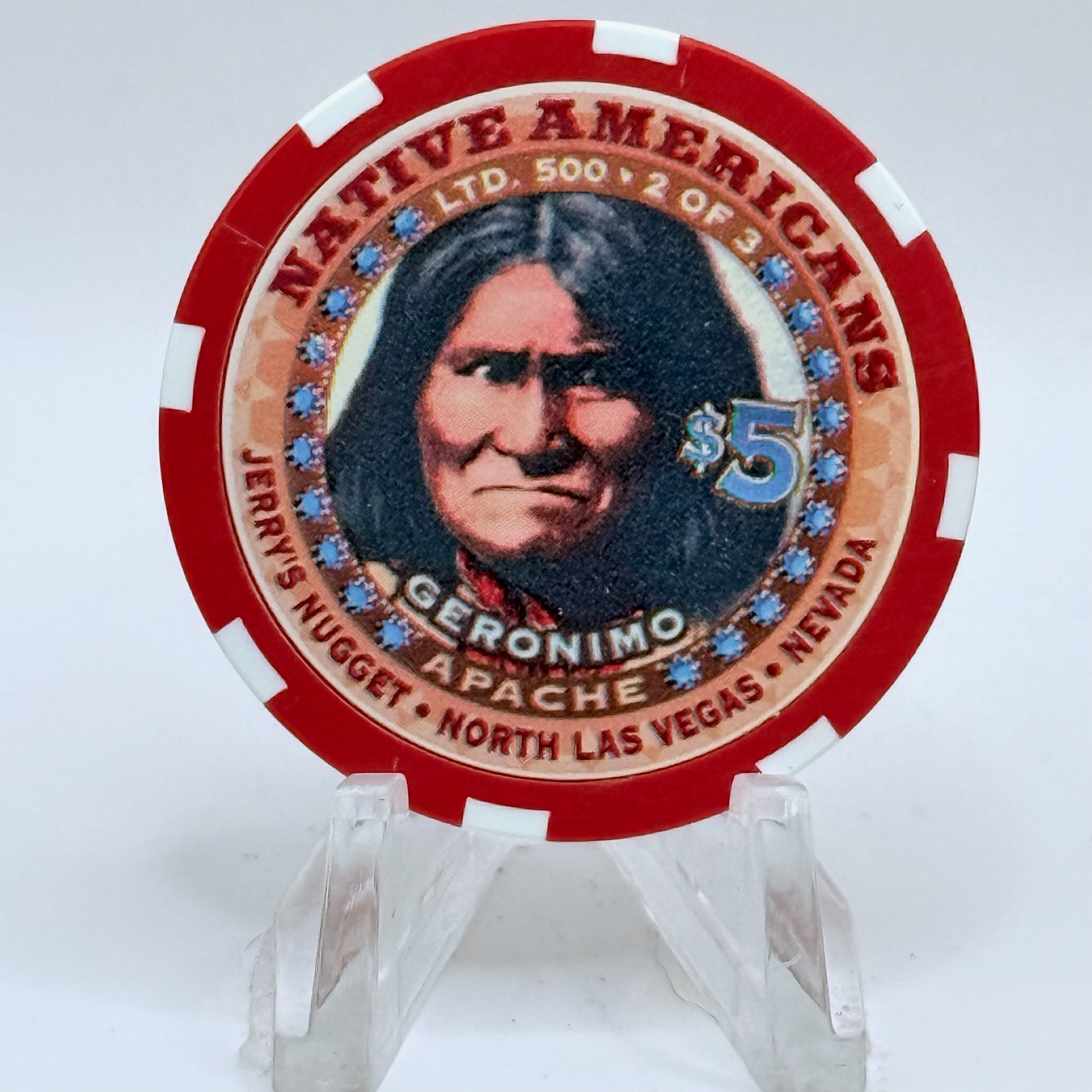 Jerry's Nugget N. Las Vegas Nevada 1999 'Native Americans Geronimo' LE $5 Casino Chip V5126