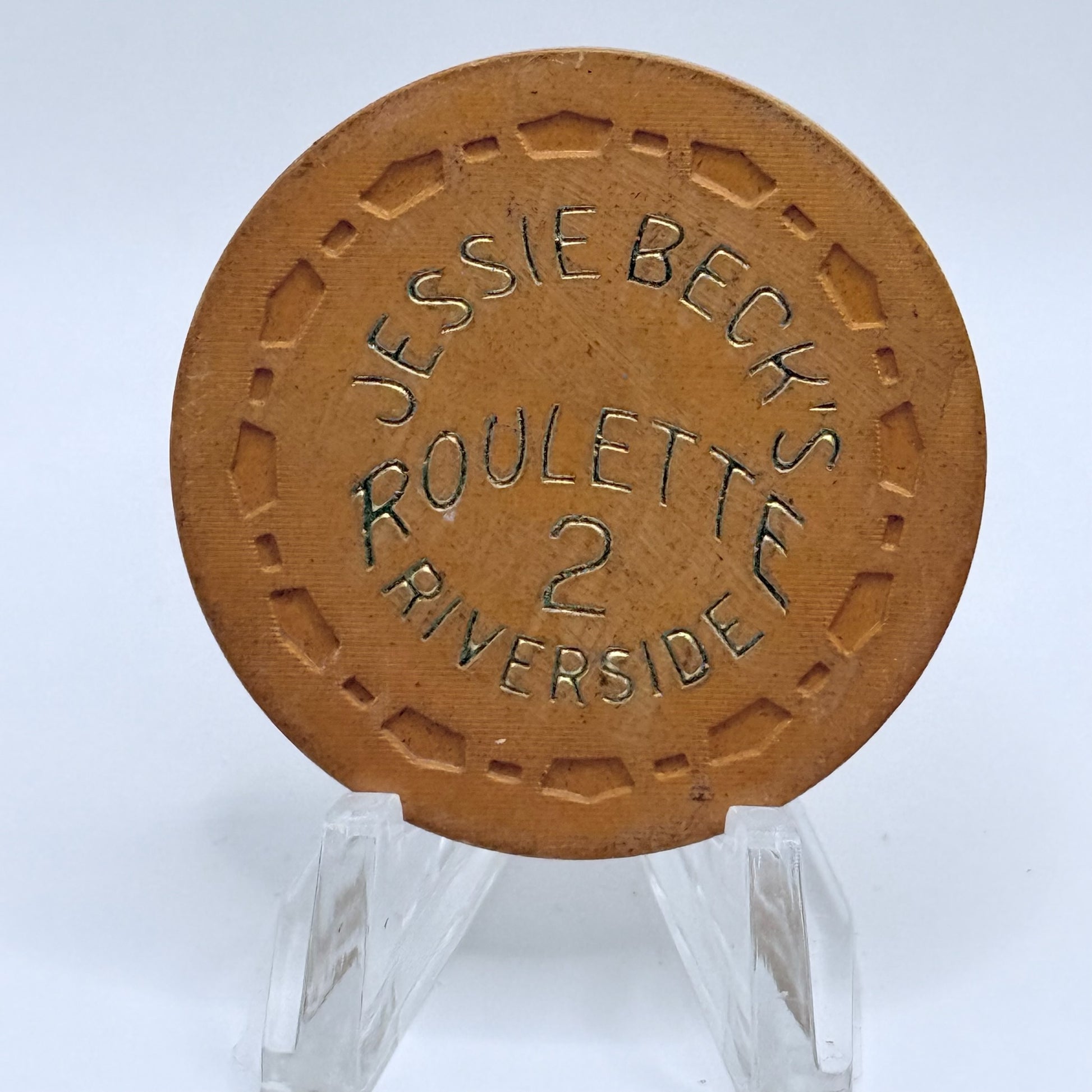 Preserved from the floors of Jessie Beck's Riverside Hotel, open from 1970 to 1978, this 1972 chip embodies a bygone era of Reno gaming.