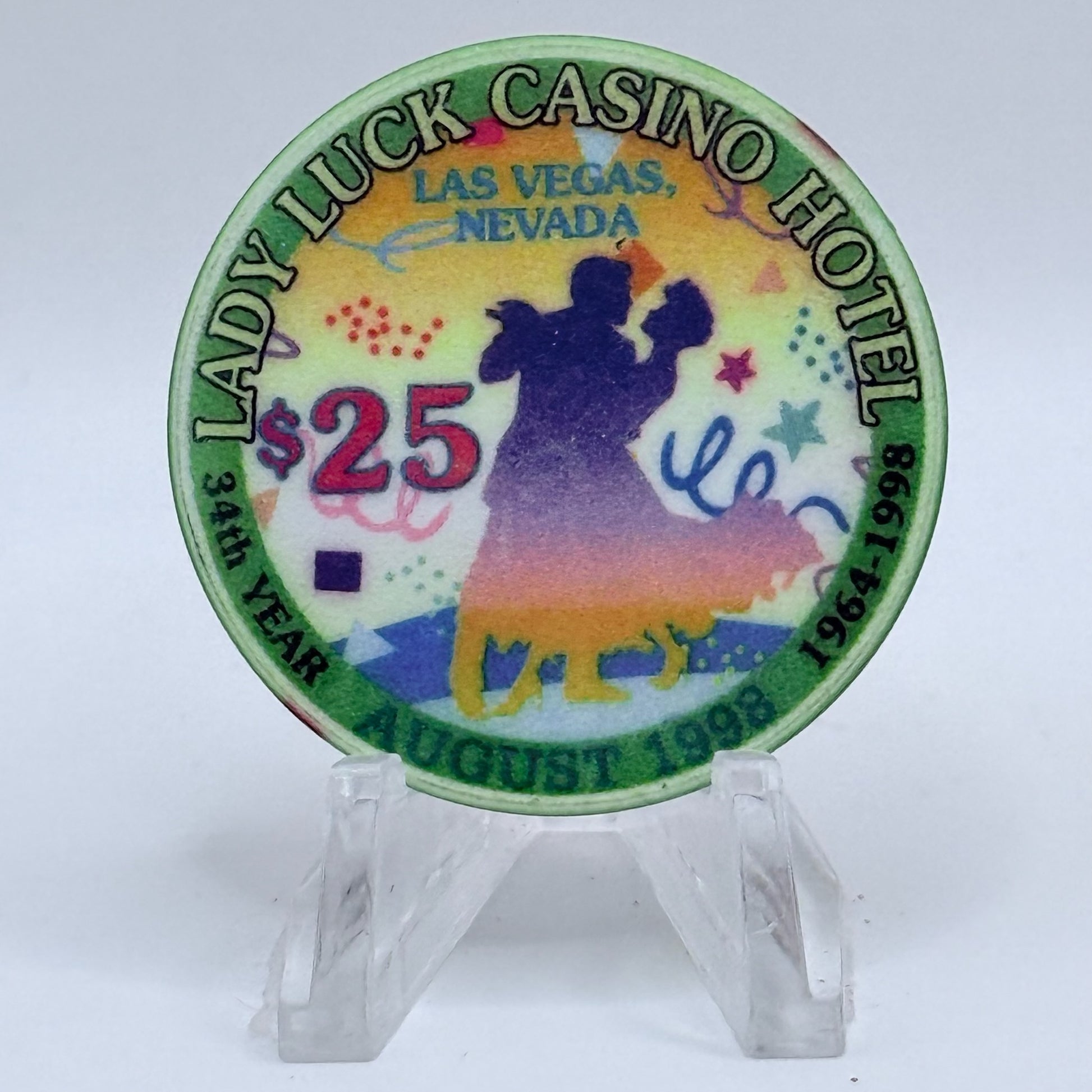 Commemorate the iconic Lady Luck, a fixture from 1964 until 2006, with this authentic 1998 $25 casino