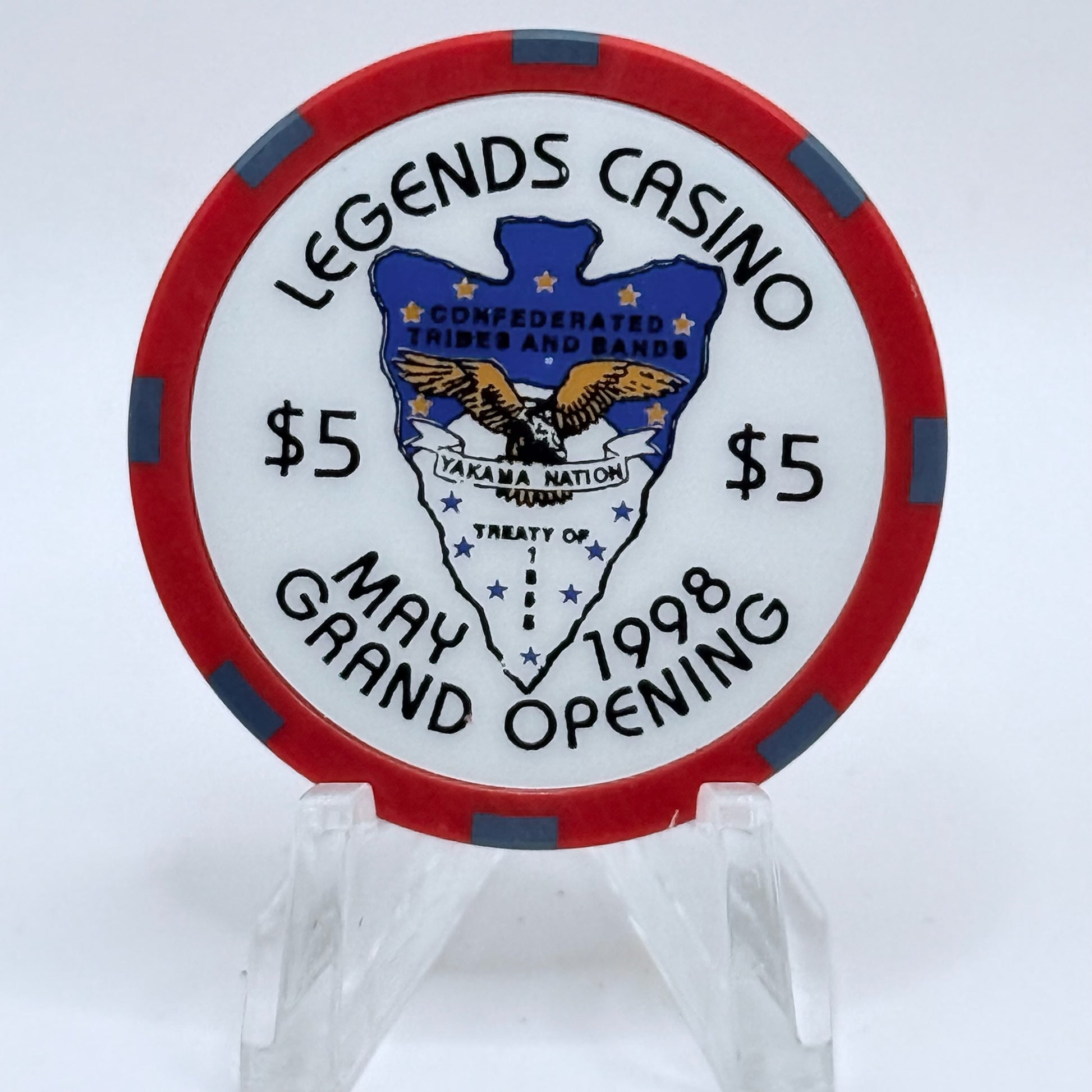 Legends Casino Toppenish Washington 1998 'Grand Opening' LE $5 Casino Chip