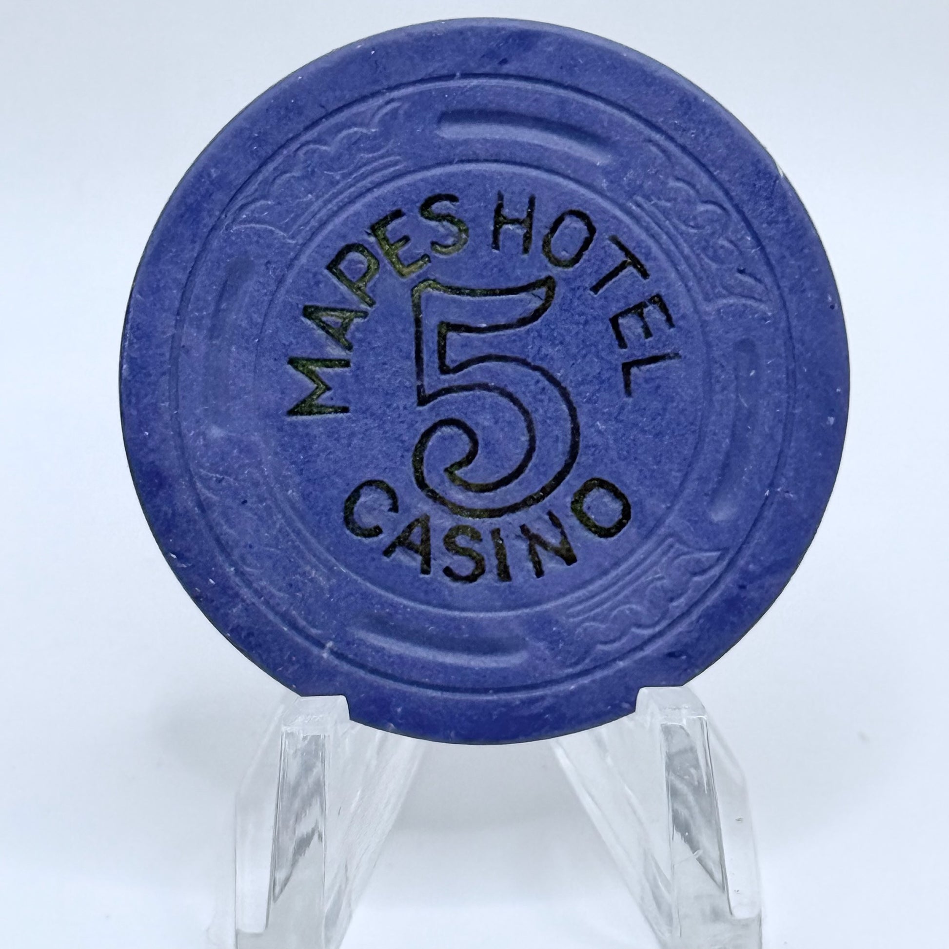 Commemorate the iconic Mapes Hotel Casino, a fixture from 1947 until 12/17/1982, with this authentic $5 casino chip.